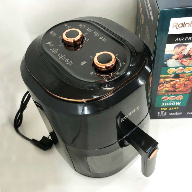 Аерофрітюрниця для дому з таймером Rainberg RB-2242 на 6 л безмасляна фритюрниця 3800 Вт. Колір: чорний