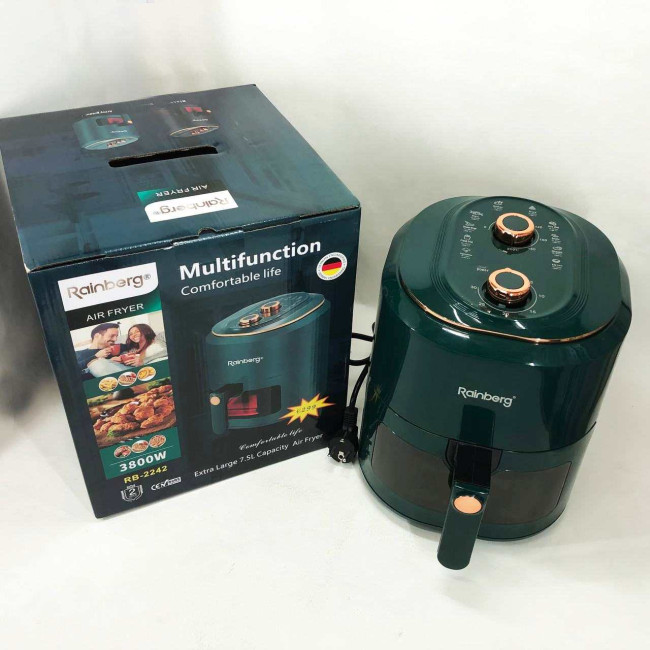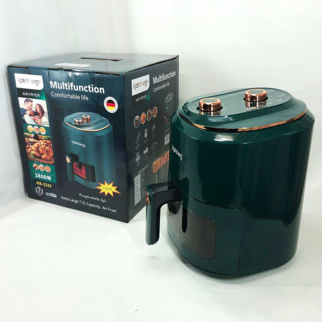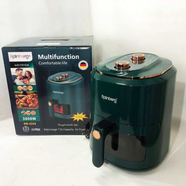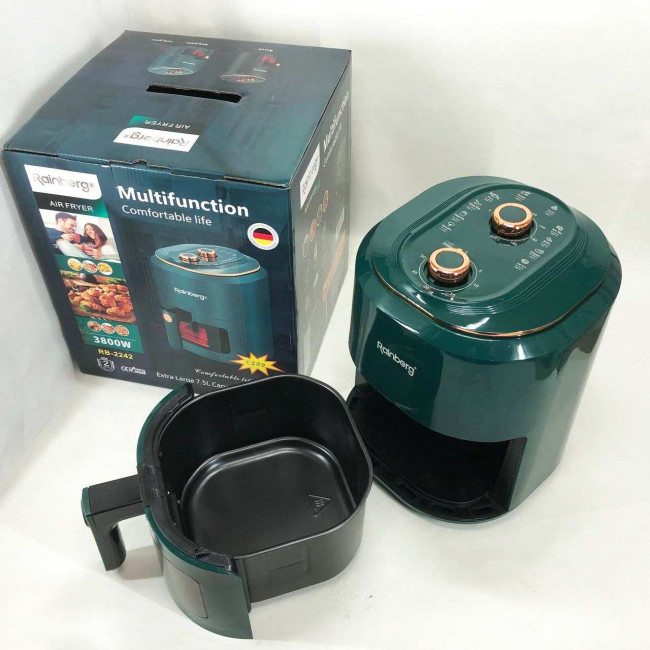 Аерофрітюрниця для дому з таймером Rainberg RB-2242 на 7.5л безмасляна фритюрниця 3800Вт Green