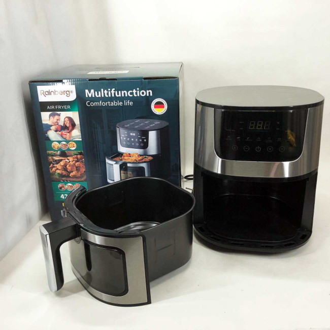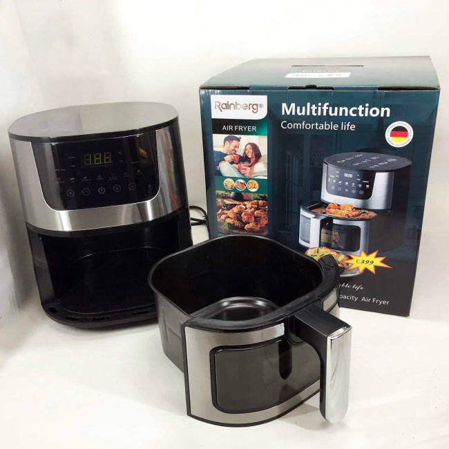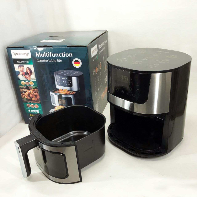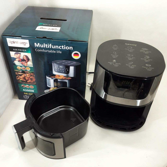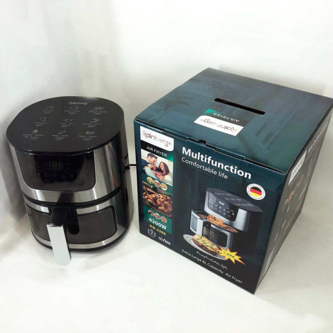 - Економія часу та енергії: Завдяки швидкій циркуляції гарячого повітря та високої потужності, аерогриль Rainberg допомагає економити час та енергію при приготуванні їжі, що особливо важливо для зайнятих сучасних людей.