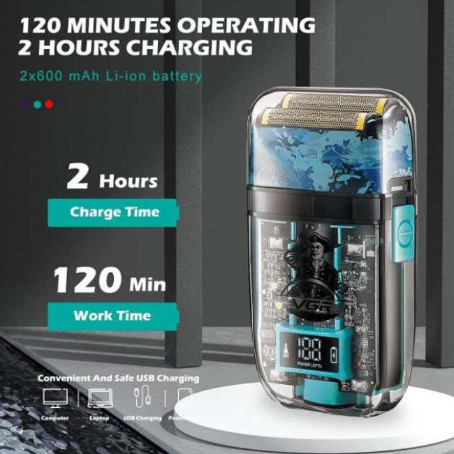 Шейвер працює від Li-Ion акумулятора (2×600 м), який забезпечує 120 хвилин автономної роботи. Акумулятор може бути заряджений та заряджений у будь-який момент. Для заряджання шейвера можна використовувати будь-який зарядний пристрій телефону, в комплекті постачається кабель USB Type-C та зарядний блок.