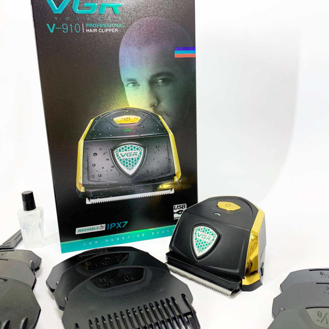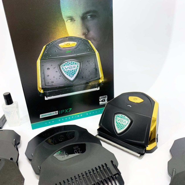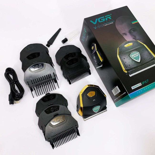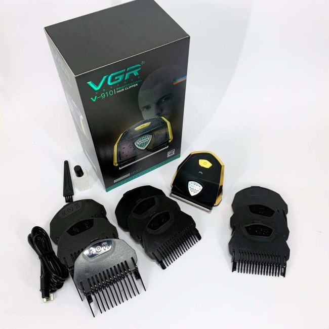 Потужний та стильний акумуляторний триммер VGR V-910 з 9 насадками, LED-дисплеєм та захистом від води IPX7. Ідеальний для стрижки волосся, бороди та вусів у домашніх умовах.