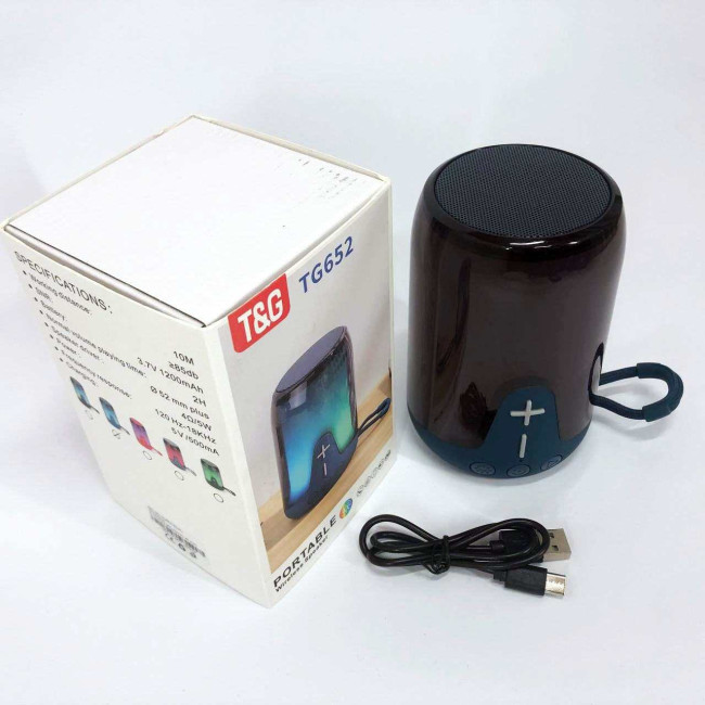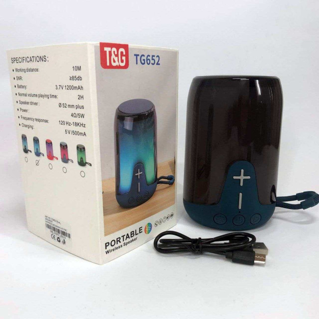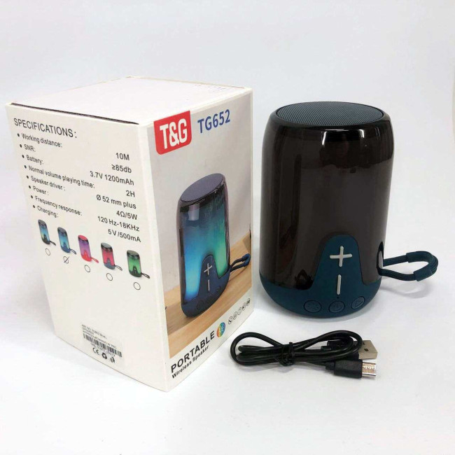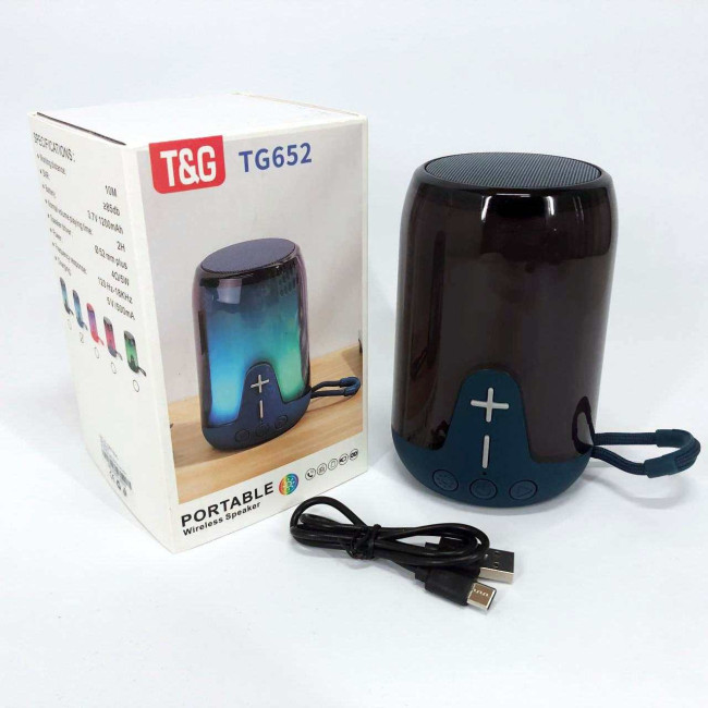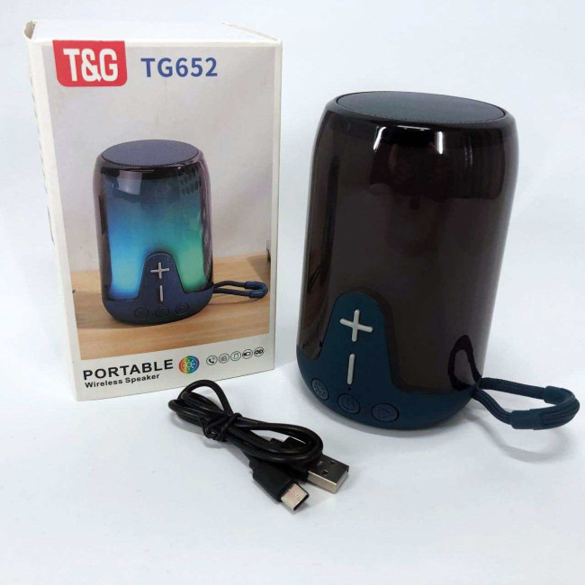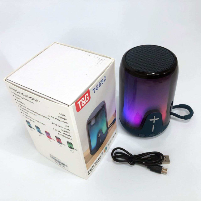 Акумуляторна переносна колонка TG652 5W з RGB підсвічуванням та ремінцем, блютуз колонка. Колір: синій