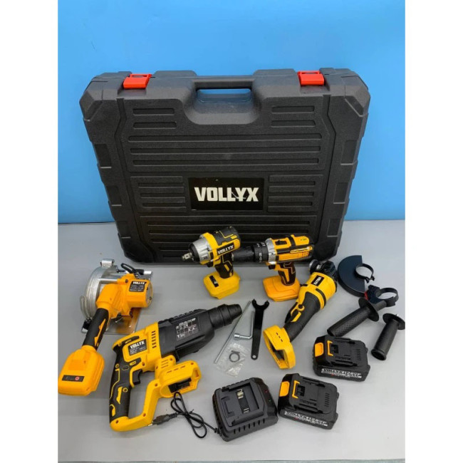 Набір акумуляторних інструментів VOLLYX ідеально підходить для використання у будівництві, ремонті квартир і будинків, монтажі меблів та систем комунікацій. Відмінно справляється із завданнями свердління, шліфування, різання та закручування. Рекомендований для професіоналів, яким важлива ефективність і надійність, а також для приватних користувачів, які бажають мати завжди під рукою багатофункціональну техніку.