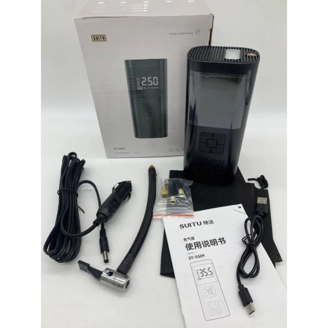 Акумуляторний повітряний компресор ST5509D з цифровим екраном – сучасний і компактний пристрій для накачування шин та інших гумових виробів. Завдяки вбудованому акумулятору та зручному дисплею цей компресор забезпечує автономну роботу і точний контроль тиску, що особливо важливо в дорозі та за відсутності доступу до електромережі.