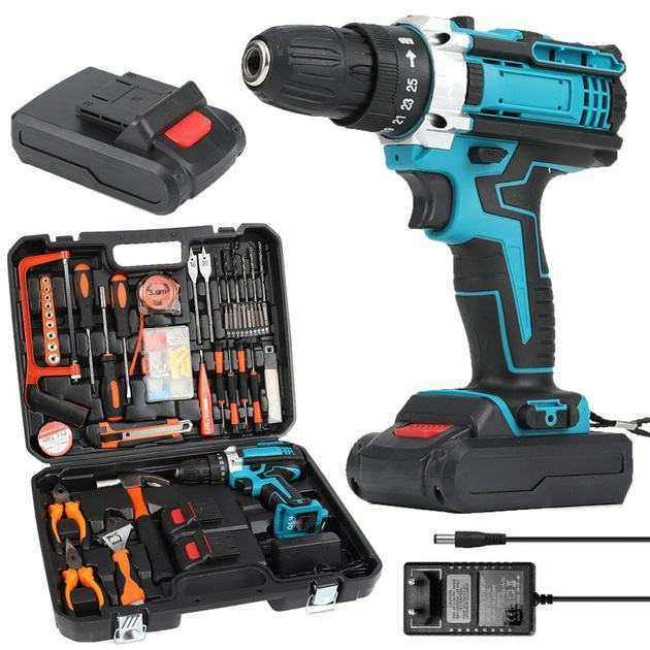 Акумуляторний шуруповерт з набором інструментів + 2 акумулятори, ударний шуруповерт + кейс