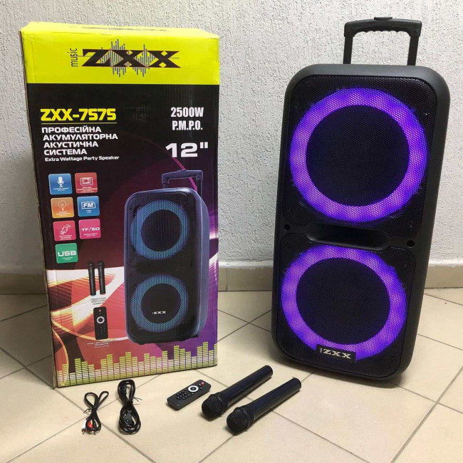 Акустична переносна колонка ZXX-7575 300 Вт акумуляторна з мікрофонами 80х39х33 см