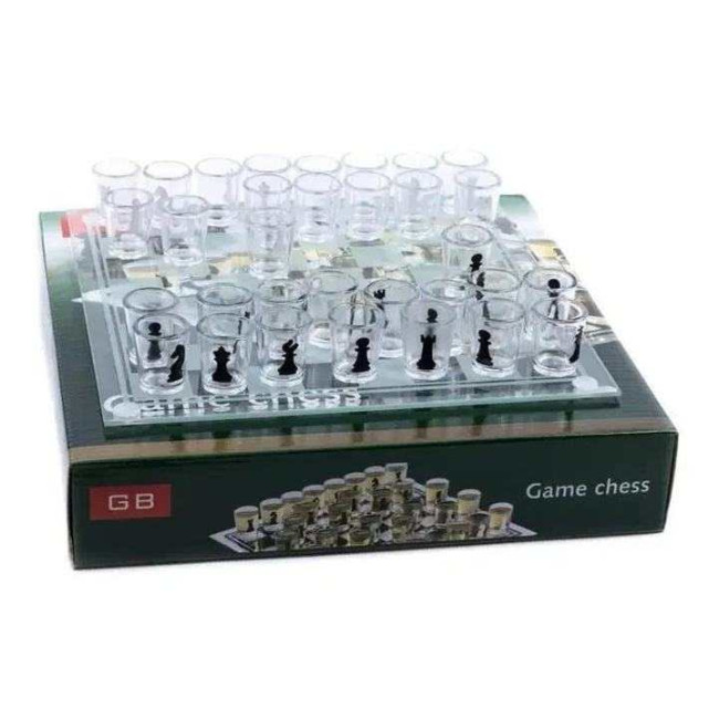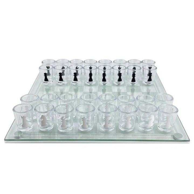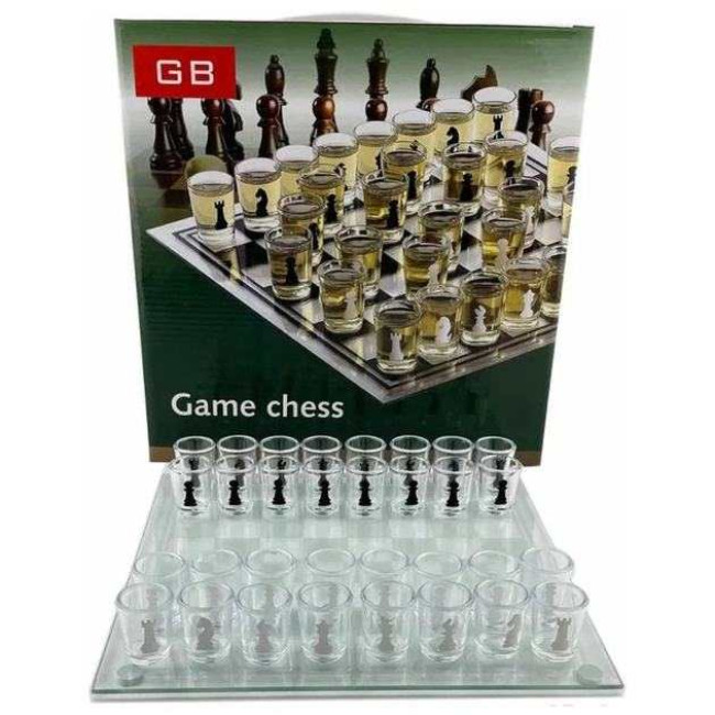 Алко П'яні шахи з чарками та скляною дошкою 24х24 см. Алкогольні шахи чарки, настільна гра 32 чарки