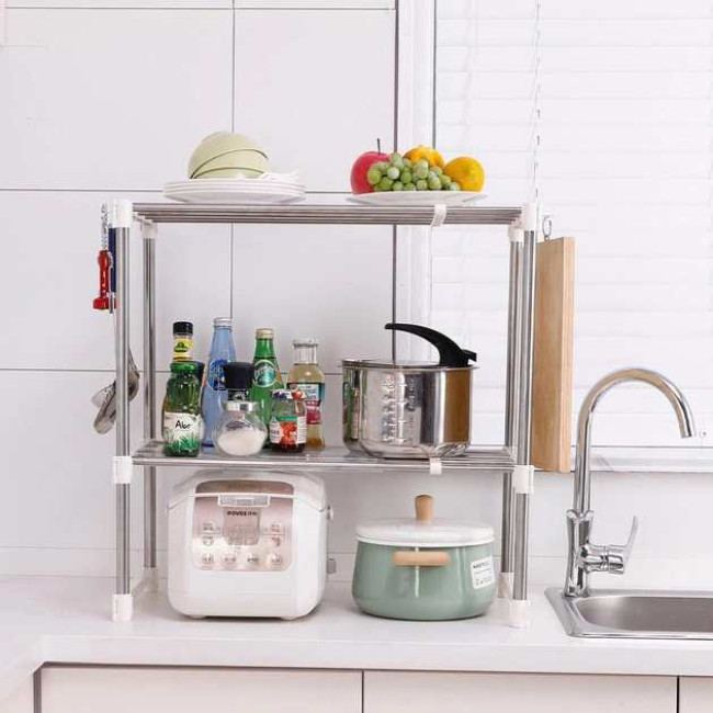 Цей багатофункціональний стелаж буде особливо корисним у компактних кухнях, де критично раціонально використовувати кожен сантиметр простору. Він підходить для встановлення на кухонному столі або робочій поверхні під мікрохвильовку, звільняючи місце та впорядковуючи зберігання посуду, спецій та дрібної кухонної утварі. Завдяки своїй міцній конструкції та стійкості, стелаж гарантує безпеку у використанні навіть при інтенсивній роботі побутової техніки.