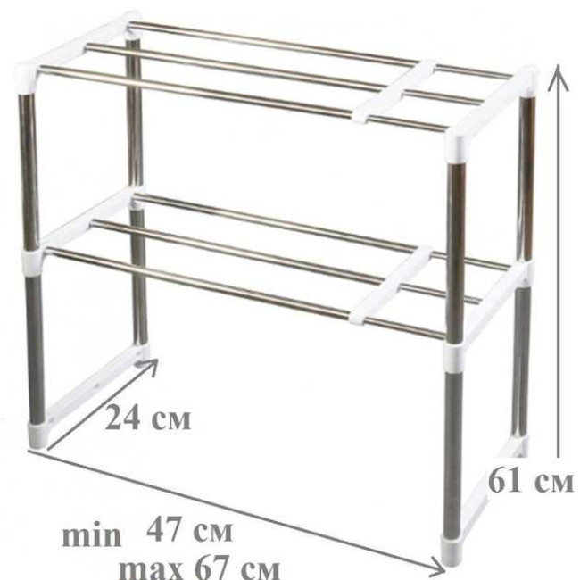 - Комплектація: 2 полиці, 8 металевих трубок, 2 пластикові ніжки-кріплення, 8 заглушок, 4 пластикових гачки