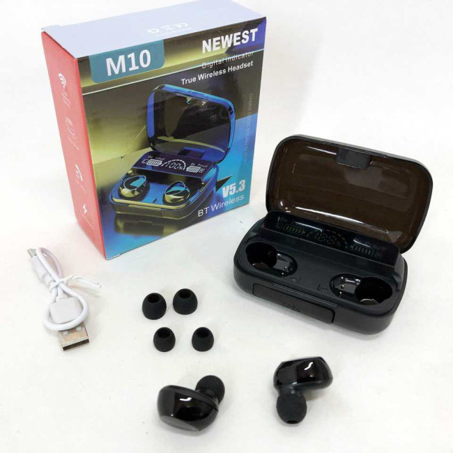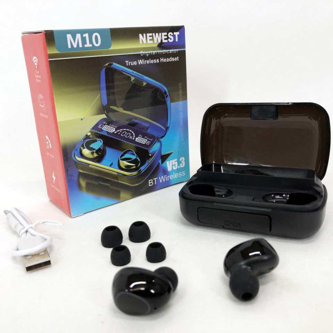 Бездротові навушники M10 з мікрофоном та док станцією-кейсом, бездротові bluetooth навушники-гарнітура