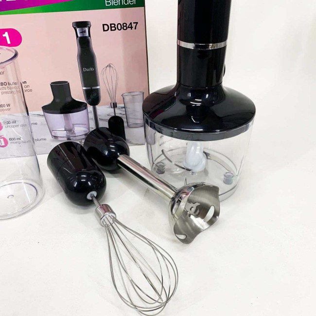 - Універсальність завдяки двом насадкам з нержавіючої сталі: блендер для крем-супів і коктейлів, венчик для збивання білків, кремів і тесту.