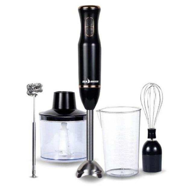 Sea Breeze стане незамінним на кухні для тих, хто цінує швидкість і якість приготування їжі. Він ідеальний для приготування крем-супів, пюре, коктейлів, соусів, а також для подрібнення горіхів, овочів і фруктів. З ним легко готувати дитяче харчування або збивати білки для десертів – одним словом, блендер комфортно і якісно працюватиме з найрізноманітнішими продуктами.