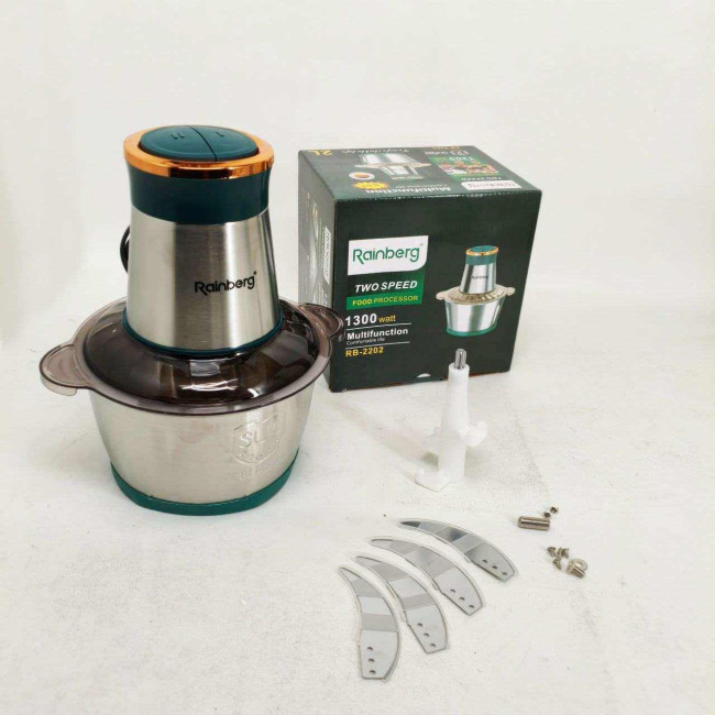 Блендер стаціонарний Rainberg RB-2202 кухонний подрібнювач 1300W чаша металева на 2л чоппер
