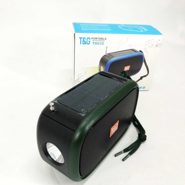 Bluetooth-колонка TG632 з радіо, ліхтарем, сонячною батареєю та гучномовцем. Колір: зелений