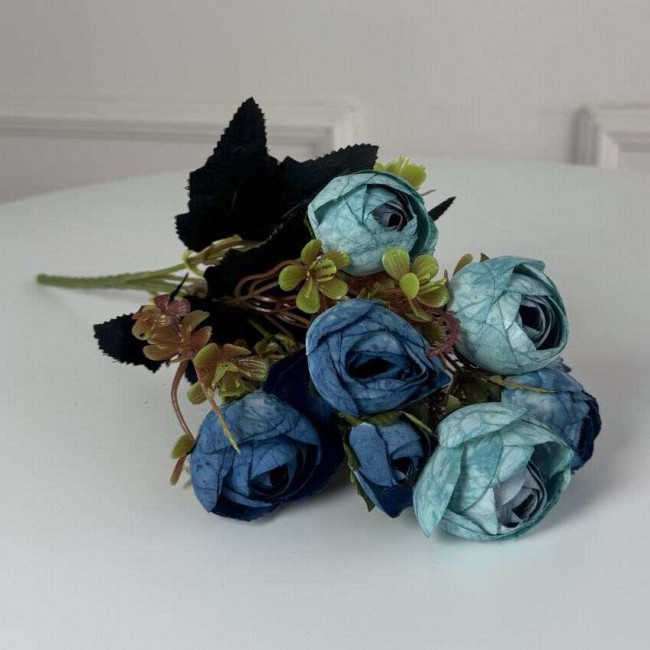 Букет Ранункулюсів штучний, 30 см, 5 стебел, 8 квіток/мікс (2 букети в уп.). Колір: синій