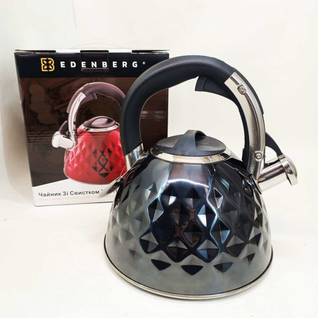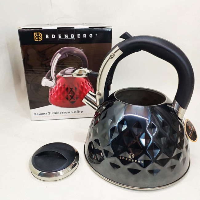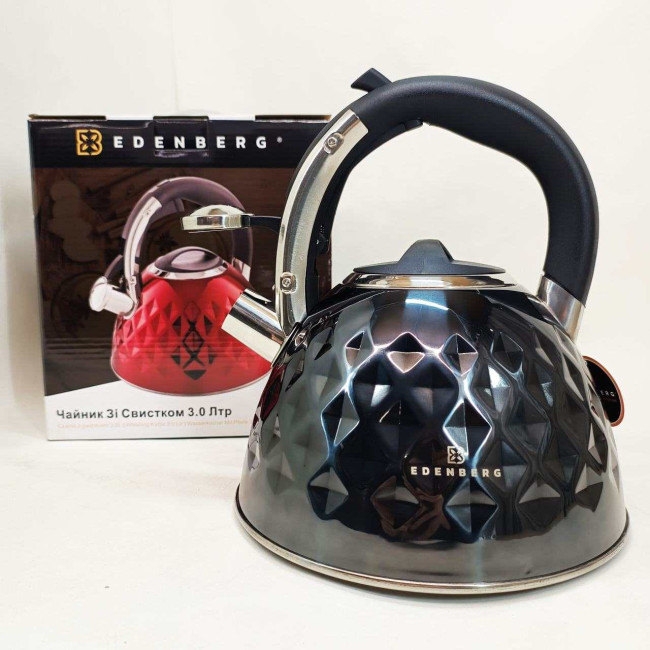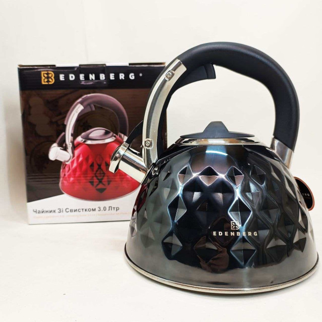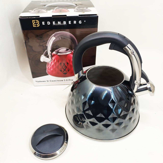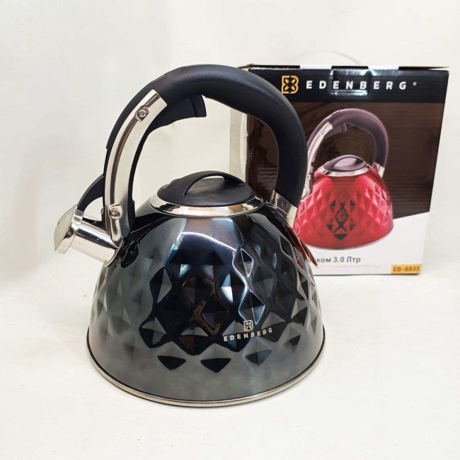 Чайник із нержавіючої сталі Edenberg EB-8833 зі свистком з індукційним дном 3л Black