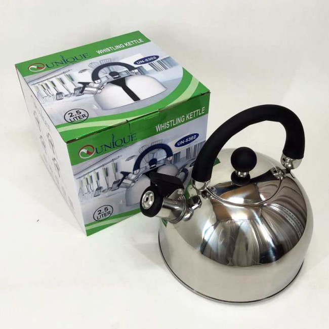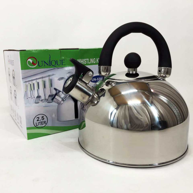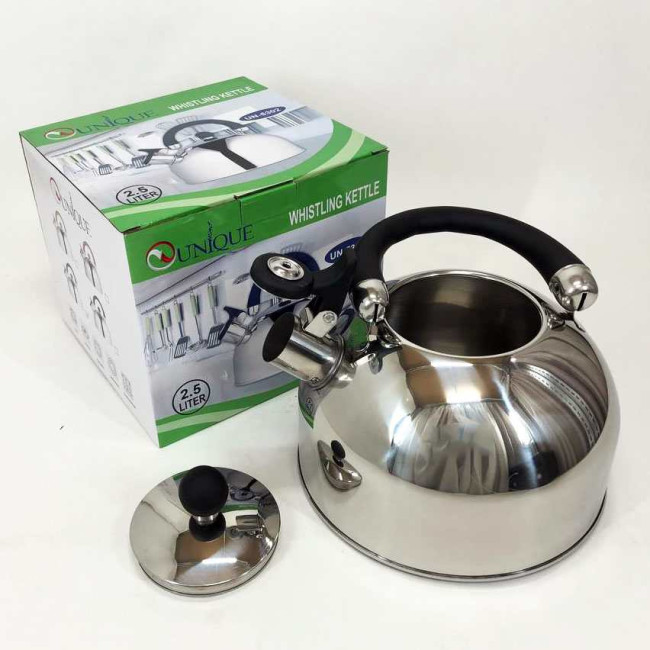 Чайник Unique із свистком UN-5302 2,5л, гарний чайник для газової плити, чайник на плиту. Колір: чорний