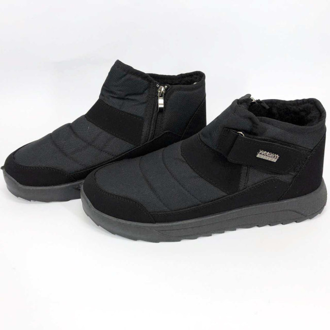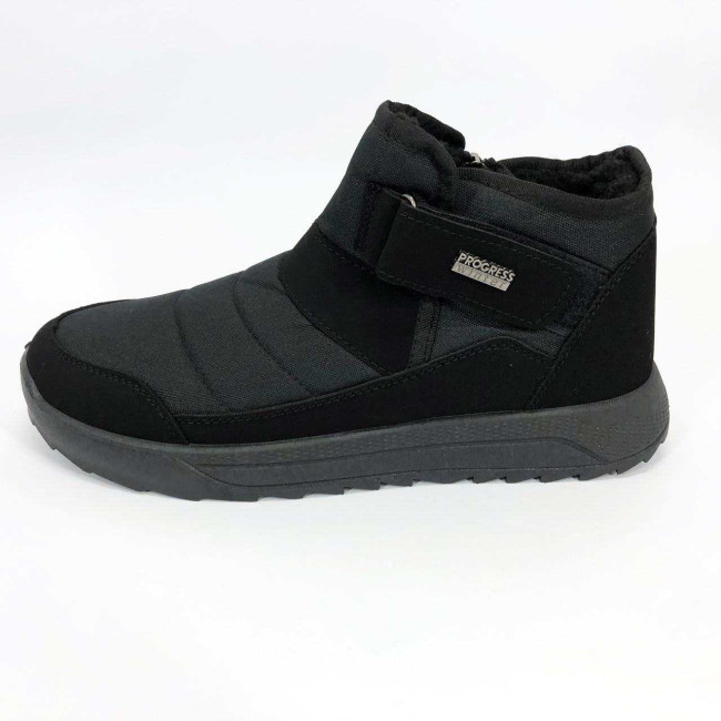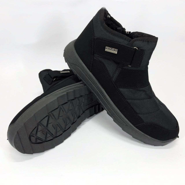 Модель має стриманий сучасний дизайн у класичному чорному кольорі, який пасує до будь-якого стилю одягу. Ергономічна форма підошви з легким рельєфом гарантує комфорт при ходьбі та хороше зчеплення з поверхнею. Такі черевики підходять як для міських умов, так і для прогулянок на свіжому повітрі в прохолодну пору року.