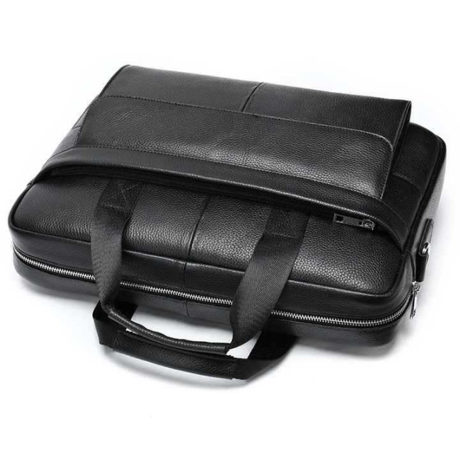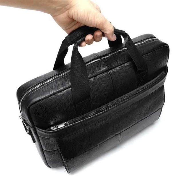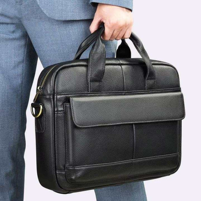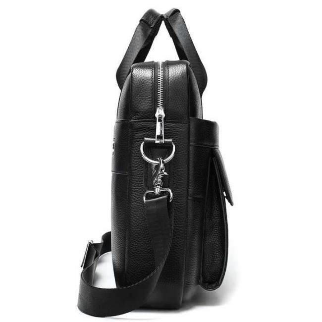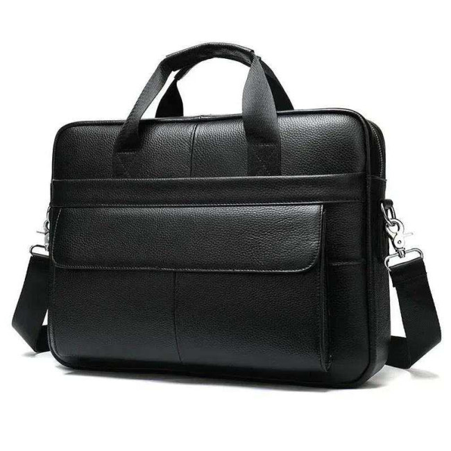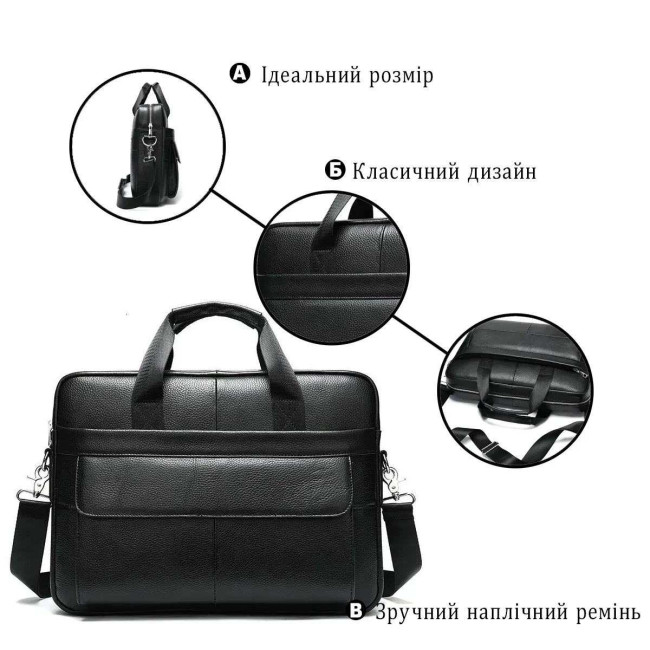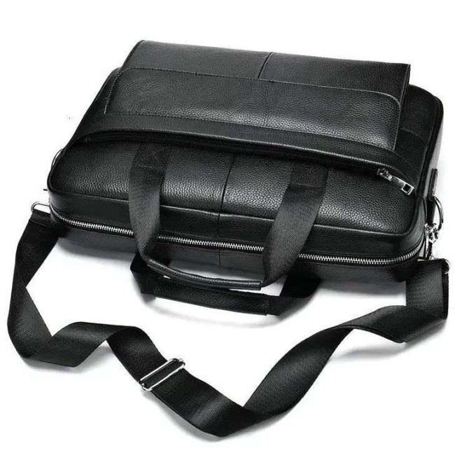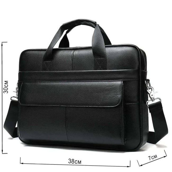 Вишукана та містка чоловіча сумка, виконана з преміальної натуральної шкіри (флотар) чорного кольору. Виріб поєднує у собі стильний дизайн та високу функціональність, має надійну металеву фурнітуру та зручну організацію внутрішнього простору. Ідеально підходить для роботи, ділових зустрічей чи повсякденного використання.