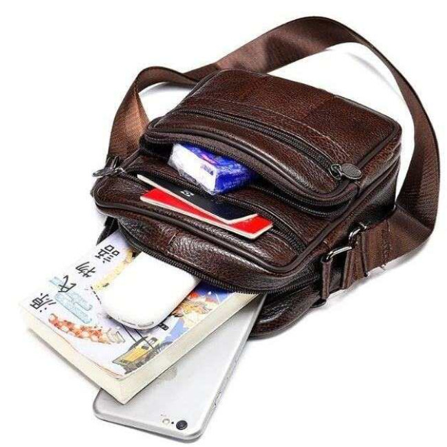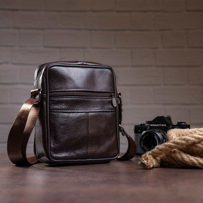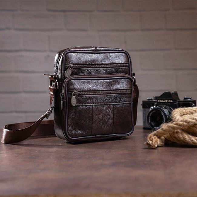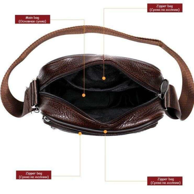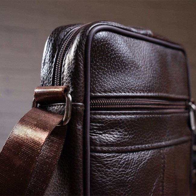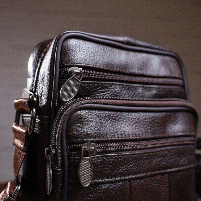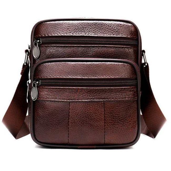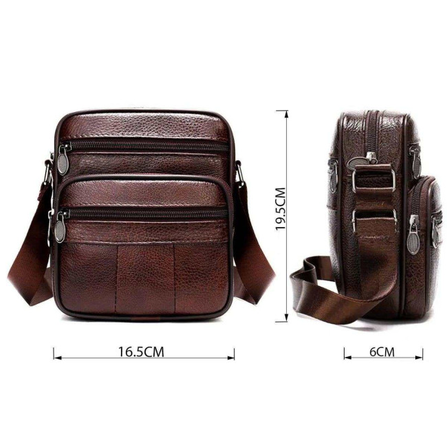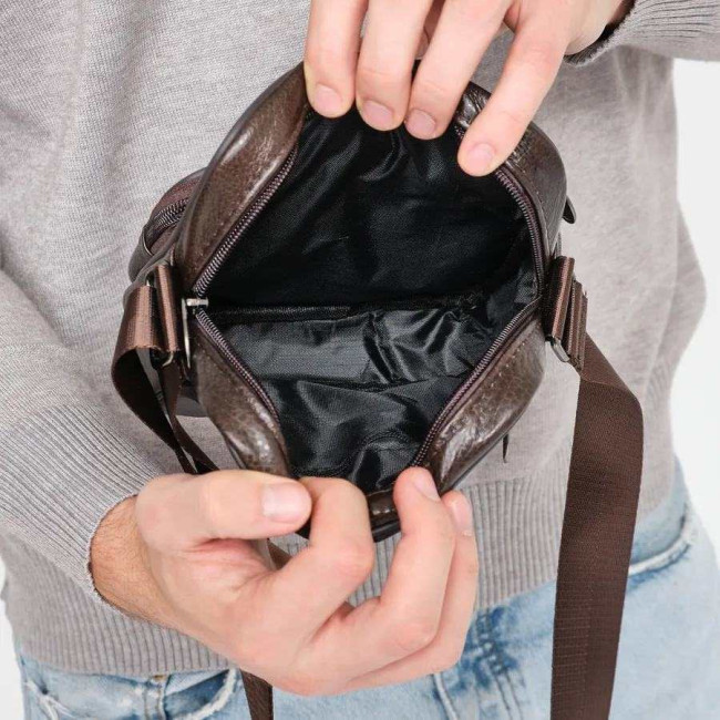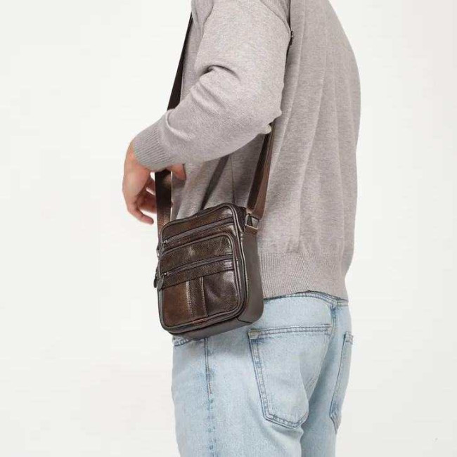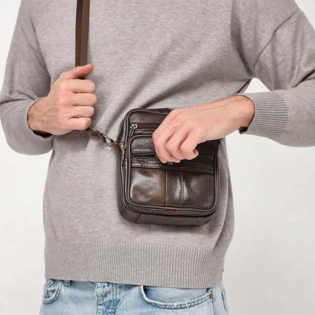Чоловіча сумка з натуральної італійської шкіри, коричнева, компактний месенджер, кросбоді