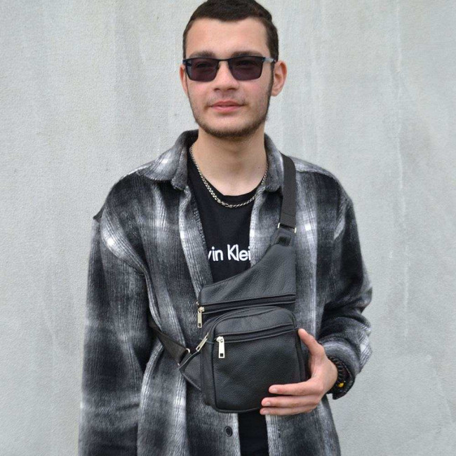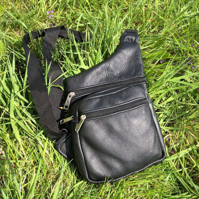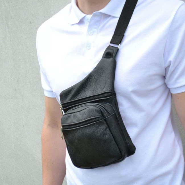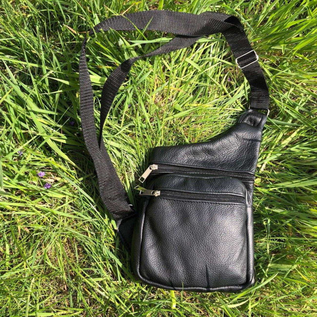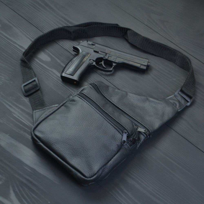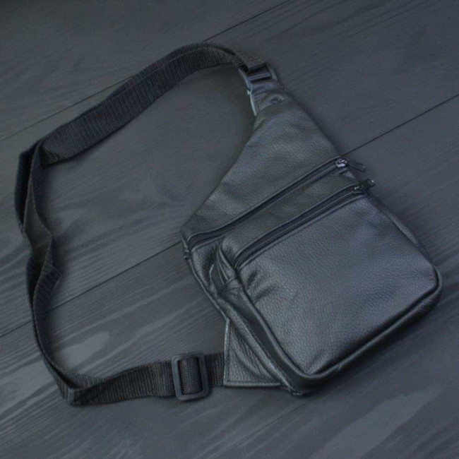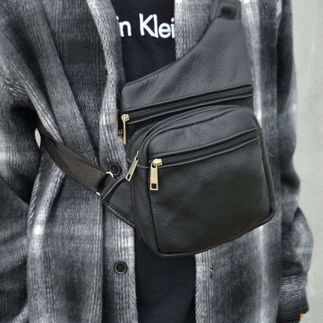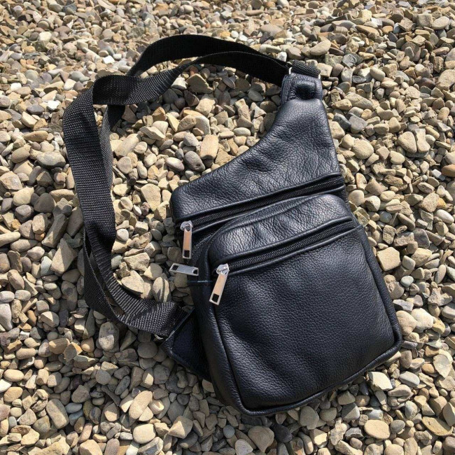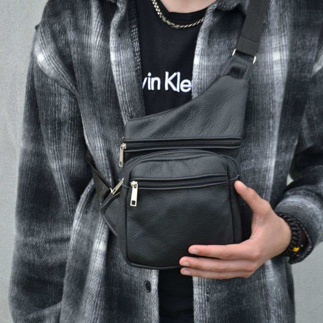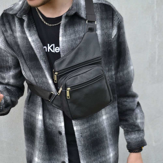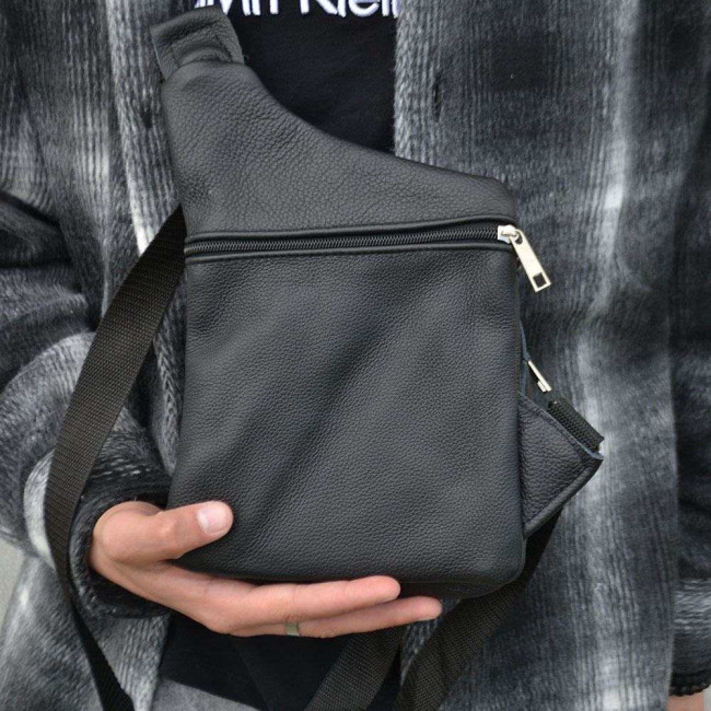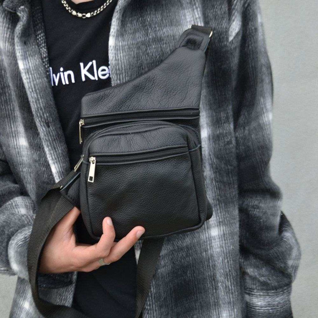 Чоловіча сумка з натуральної шкіри, тактична сумка - месенджер чорна, тактична сумка на груди