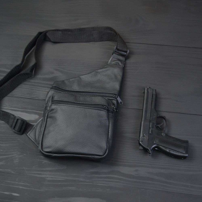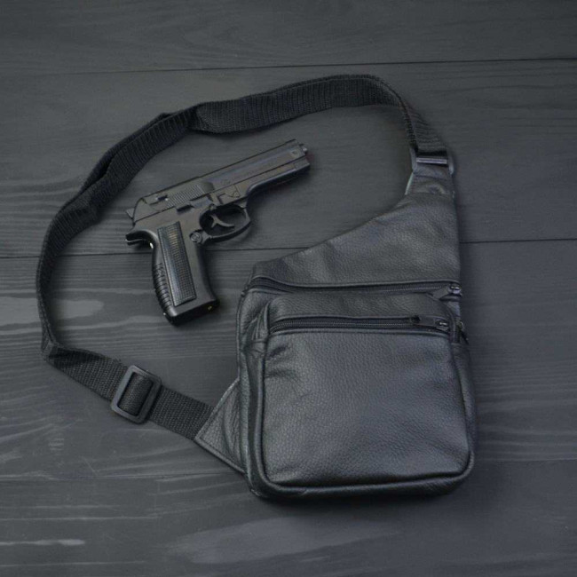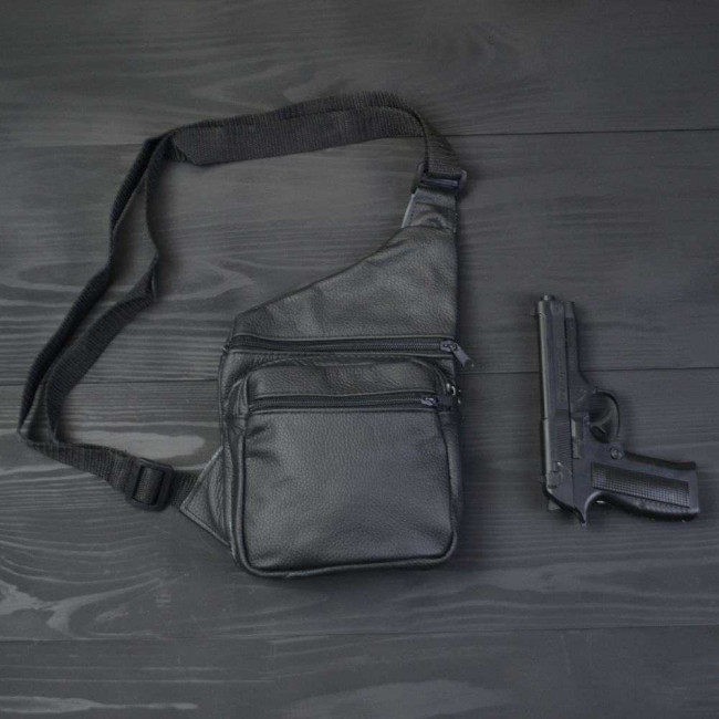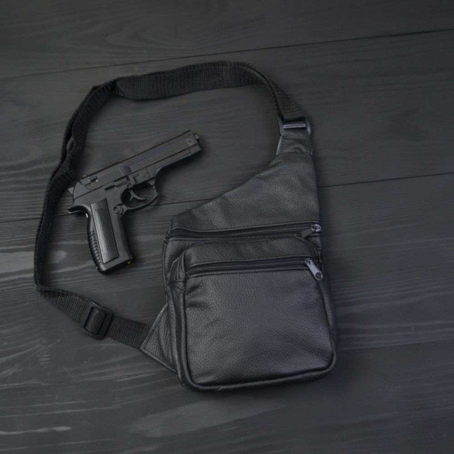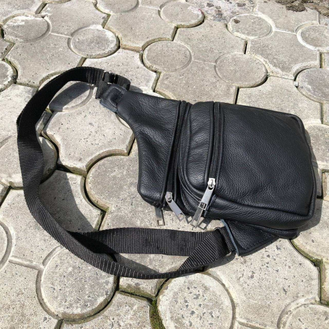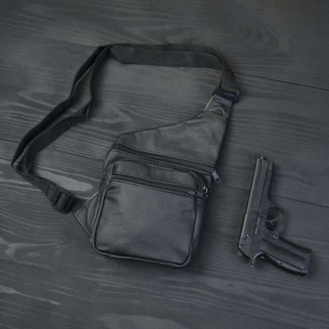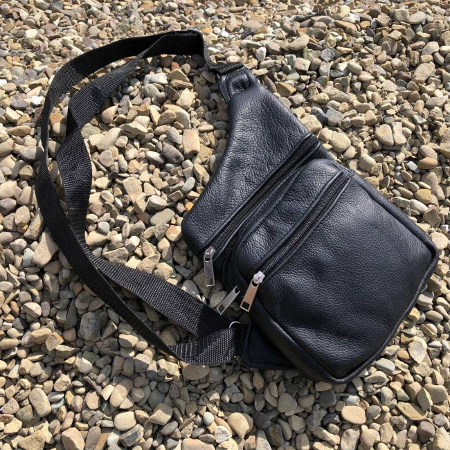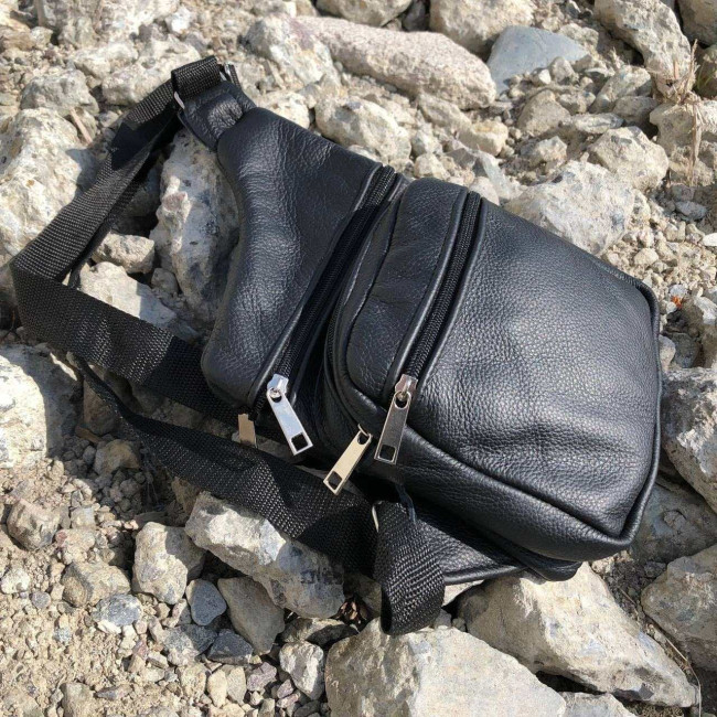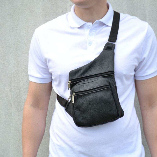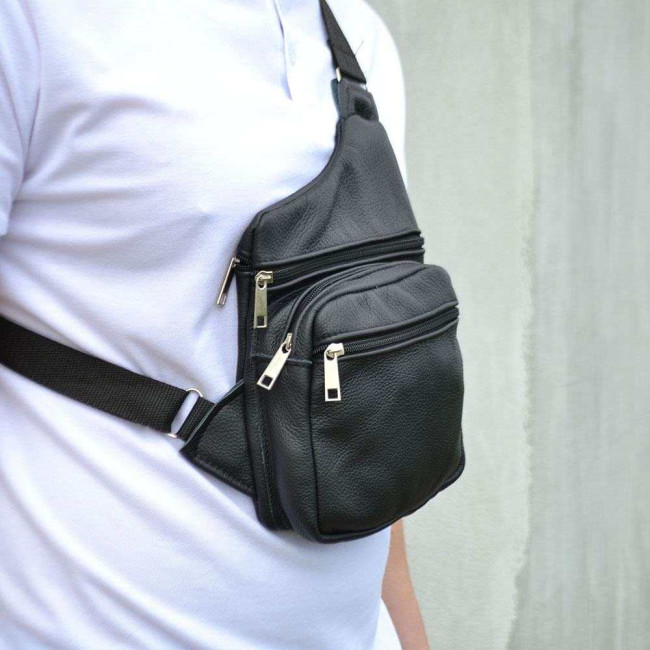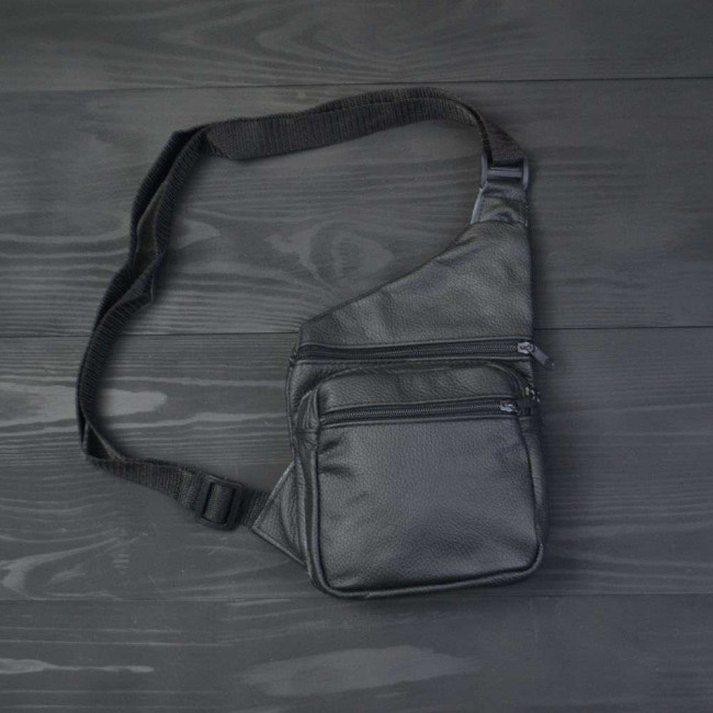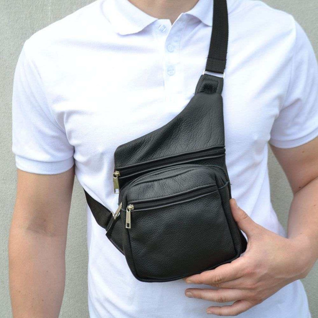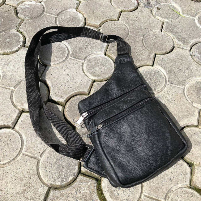 Чоловіча сумка з натуральної шкіри, тактична сумка - месенджер чорна, тактична сумка на груди