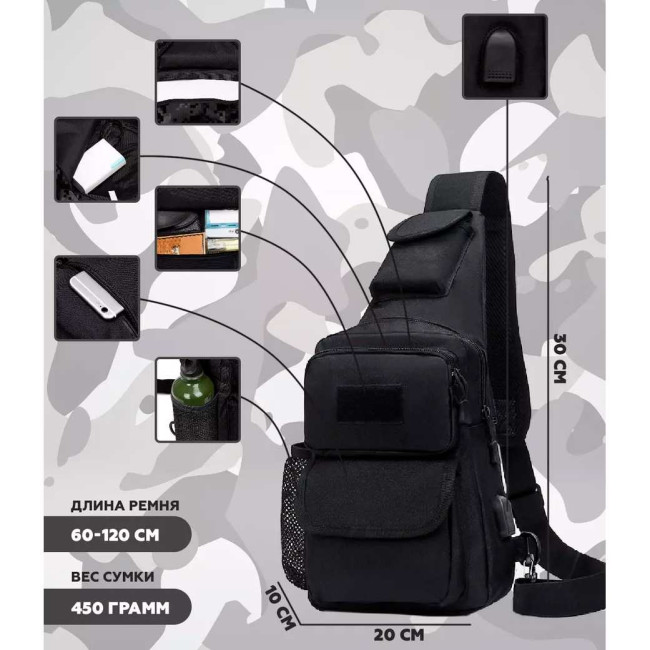 - Тип: Чоловіча тактична сумка-слінг.