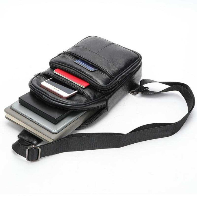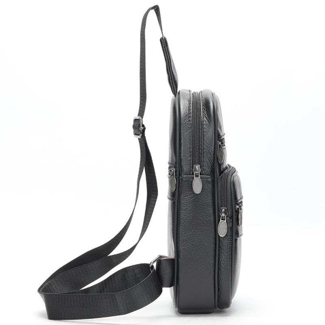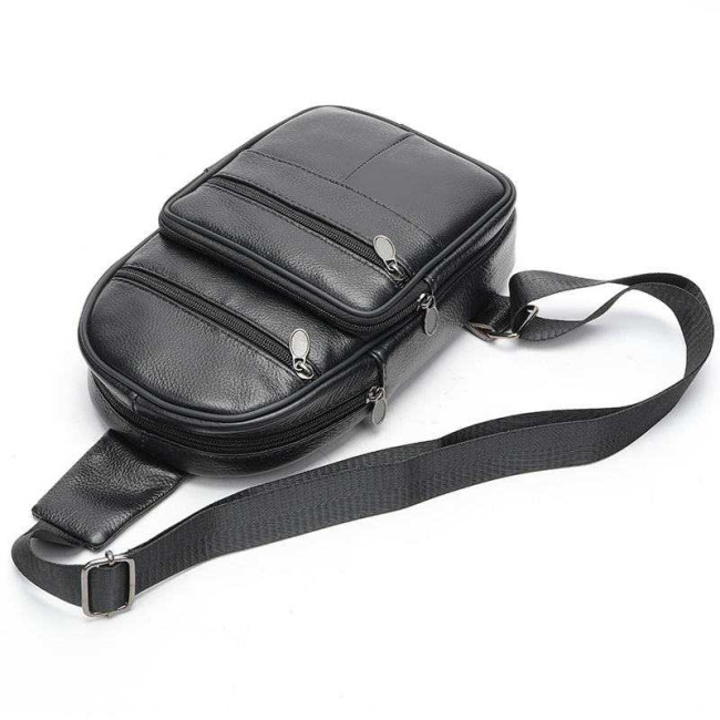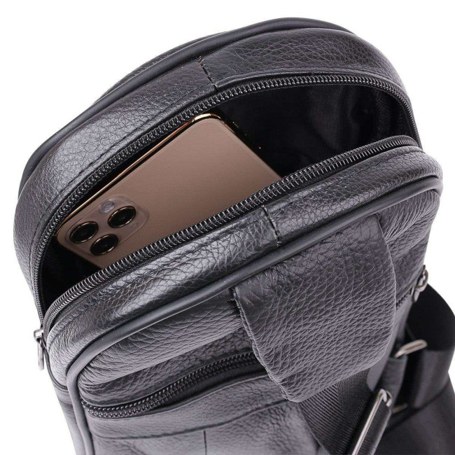 Чоловічий шкіряний слінг через плече з натуральної італійської шкіри – середній розмір, багато кишень