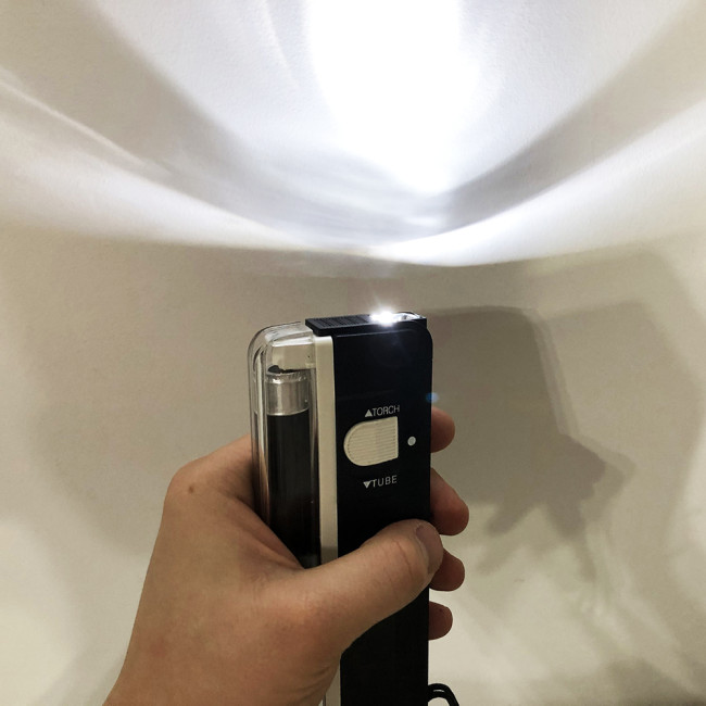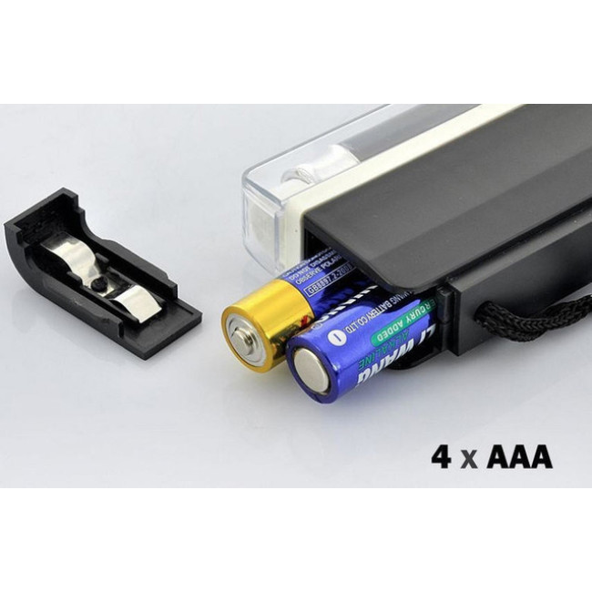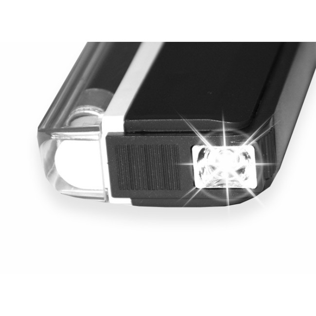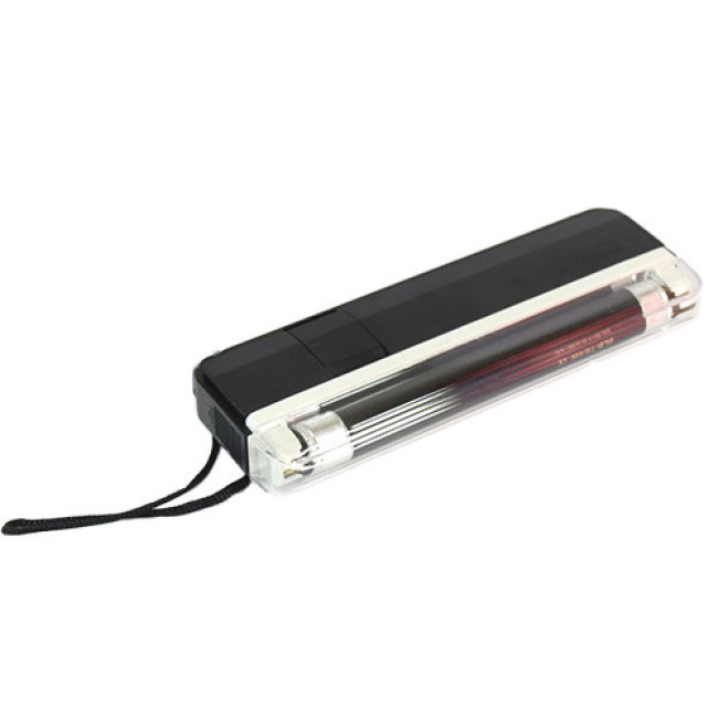 DL01 – портативний ультрафіолетовий детектор купюр, який призначений для оперативної перевірки банкнот та різних документів (права водіїв, технічні паспорти, посвідчення особи). Особливістю даної моделі є компактний розмір, який дозволяє постійно мати при собі даний пристрій. Крім того, детектор має на торці потужний світлодіод білого світіння і який також використовуватиметься для перевірки купюр і як звичайний ліхтарик. Корпус DL01 виготовлений із міцного пластику, працює детектор від 4 батарейок типу АА (не йдуть у комплекті).