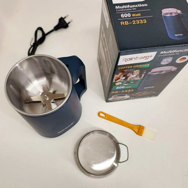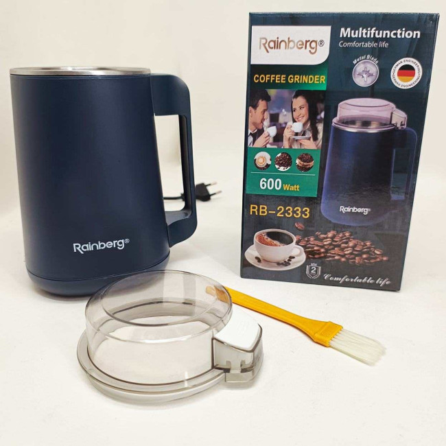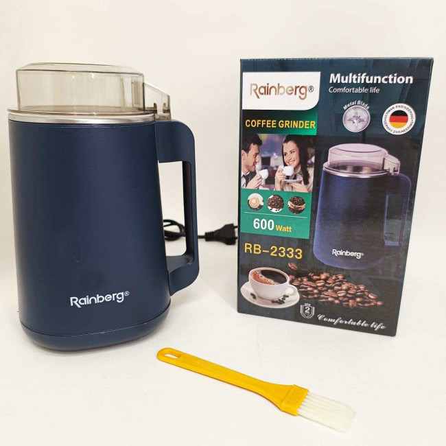 Цей подрібнювач є справжнім мультифункціональним помічником на кухні: він легко перетворює на порошок не тільки кавові зерна, а й горіхи, насіння, різноманітні спеції та крупи. Корпус виконаний у лаконічному чорному дизайні, який успішно доповнить інтер’єр будь-якої кухні. Простота керування за допомогою однієї кнопки та компактні розміри роблять Rainberg RB-2333 ідеальним вибором для щоденного використання.
