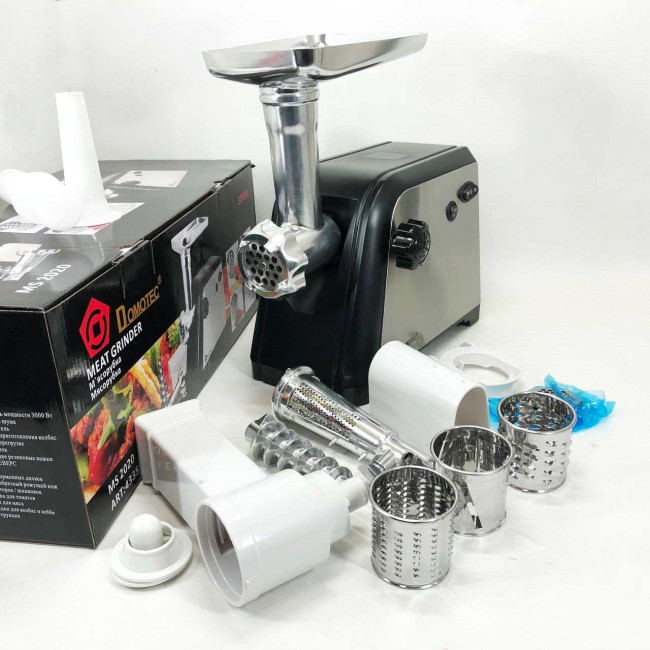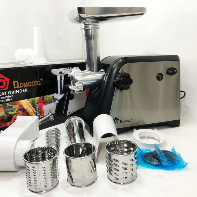 Електрична м’ясорубка Domotec – це необхідна річ на кухні кожної господині. За допомогою цієї м’ясорубки Ви зможете швидко приготувати найніжніший фарш для будь-яких страв. Тепер Ви можете готувати із задоволенням та радувати кулінарними шедеврами свою родину та друзів!