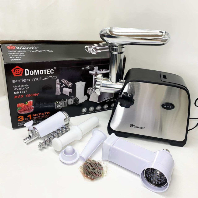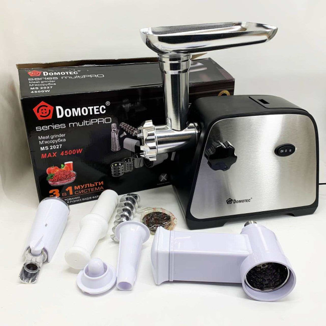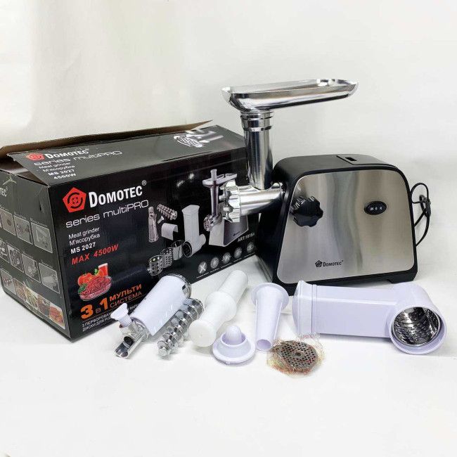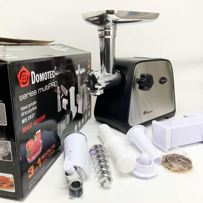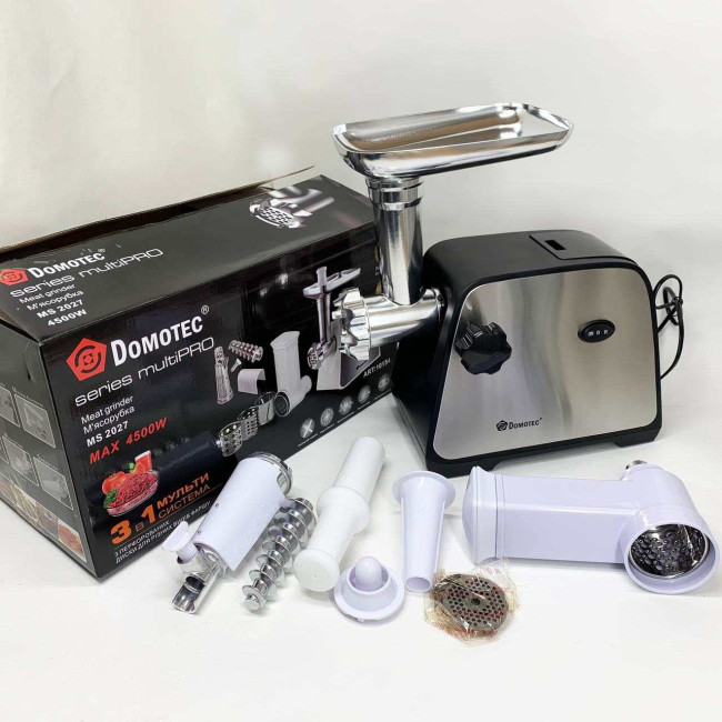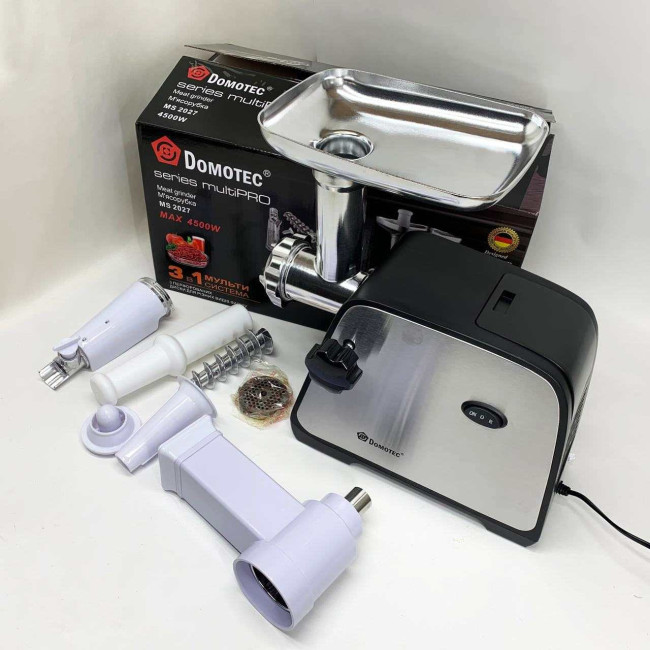 Електрична м'ясорубка Domotec MS-2027 4500 Вт з насадкою для томатів, ковбас та терками