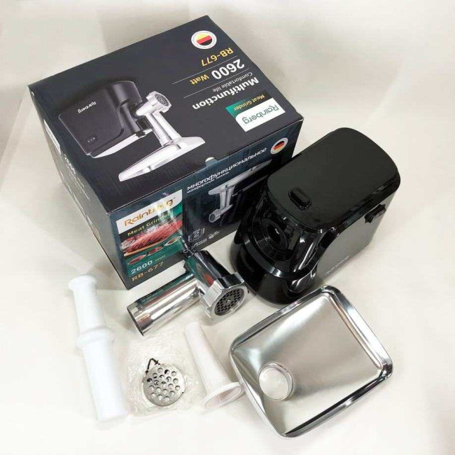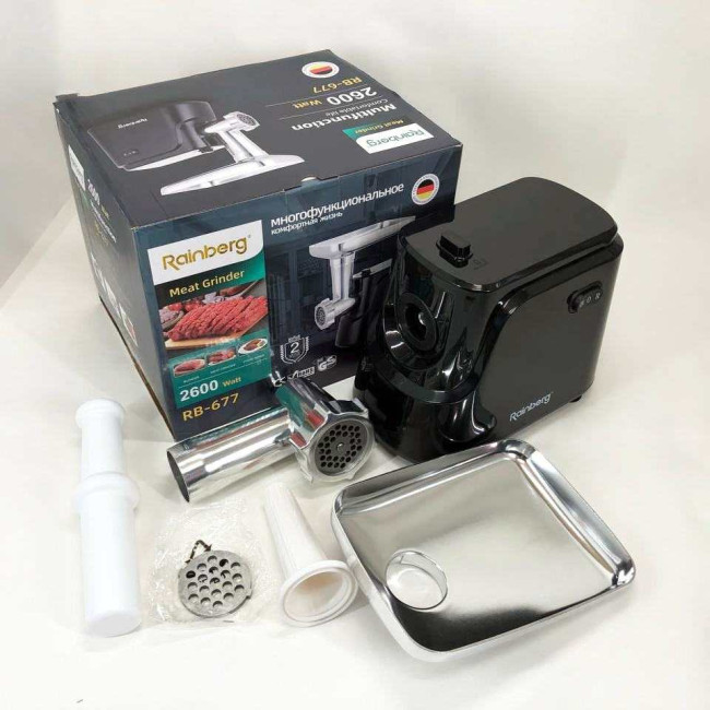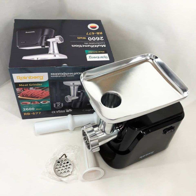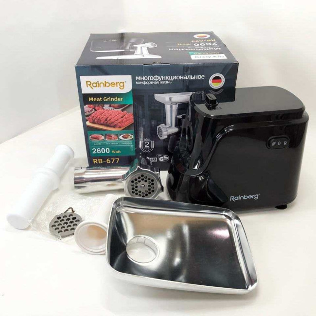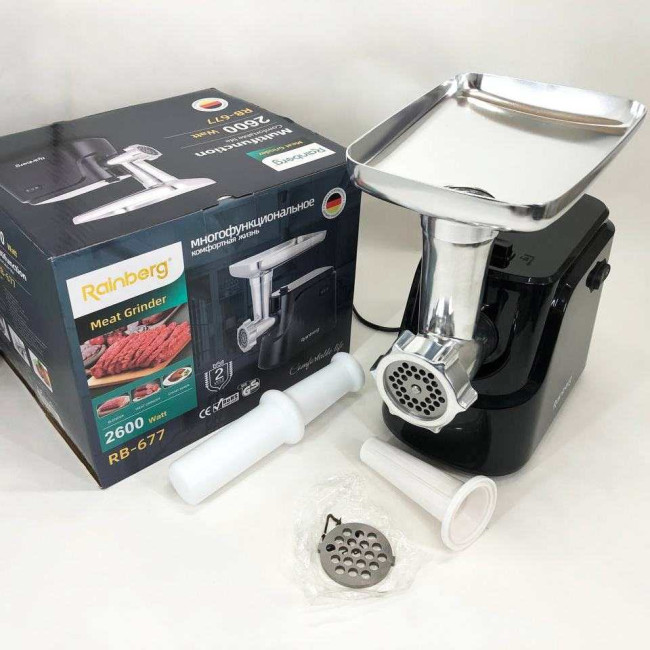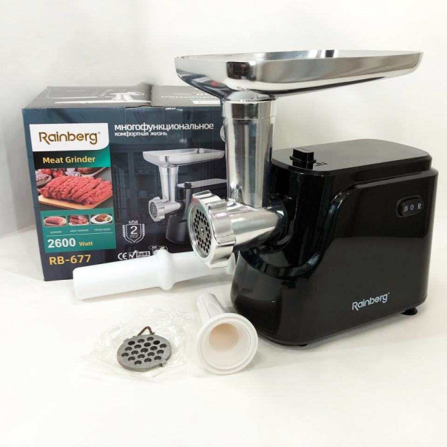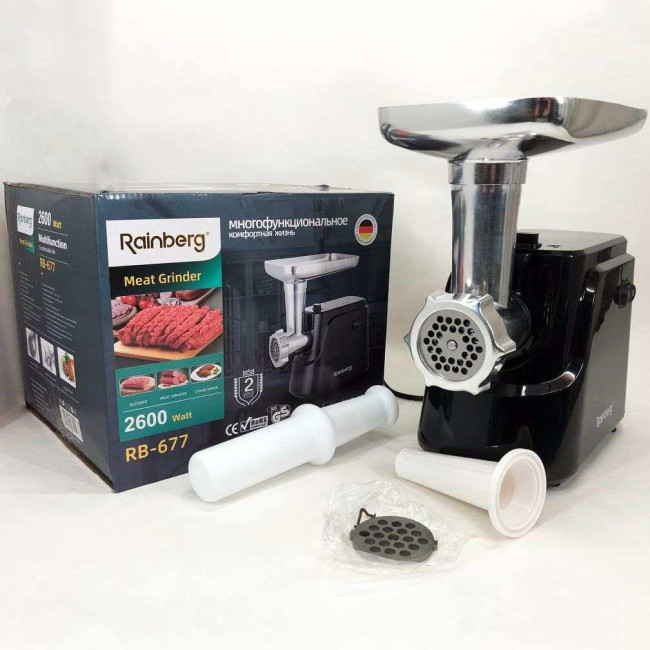Електрична м'ясорубка Rainberg RB-677 2600 Вт з насадкою для ковбас, м'ясорубка з металевим редуктором