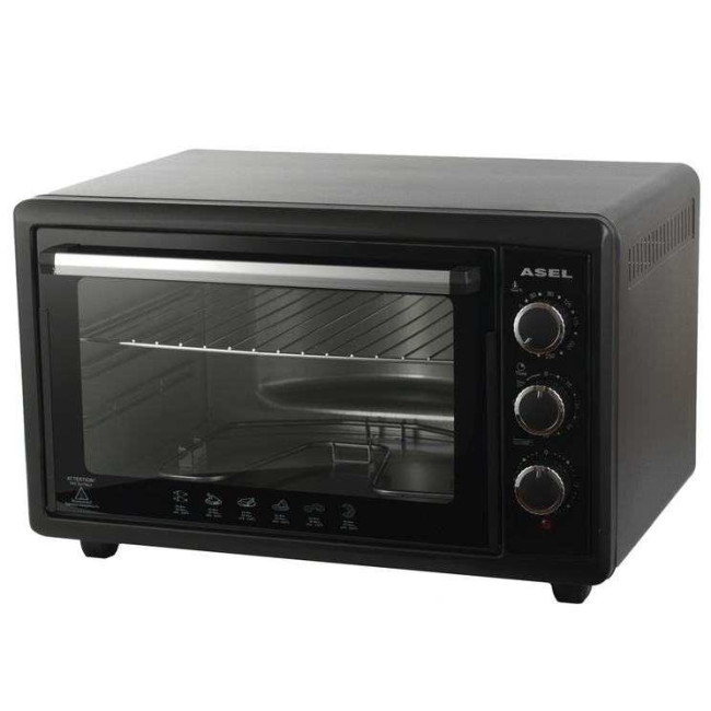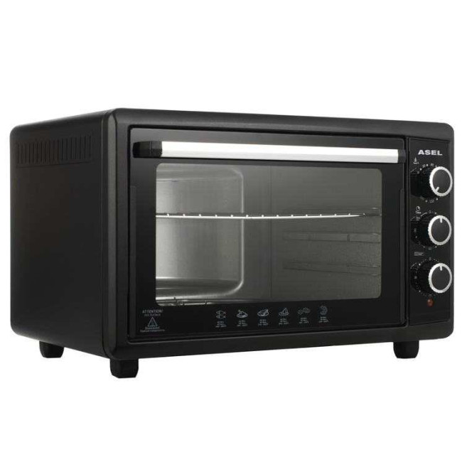 Електро духовка asel оснащена функціями розігріву їжі та напоїв. Потужність духовки становить 1,5 кВт. Корпус виготовлений з нержавіючої сталі та зверху прихований двошаровим біопокриттям із жаростійкого матеріалу. Усередині духовка легко чиститись. Крім цього, духовка оснащена сучасною системою теплоізоляції, має два вбудовані нагрівальні елементи. верхній та нижній. Турецька духовка містка та функціональна. Об’єм Духовка електрична asel досить великий і становить 50 л.