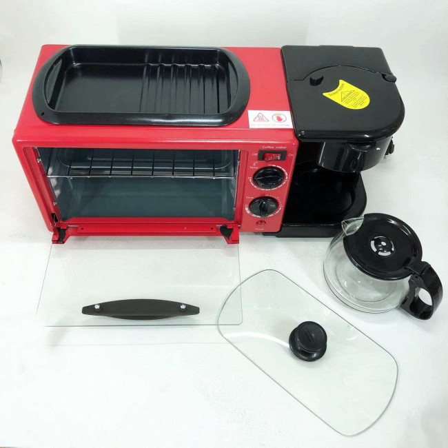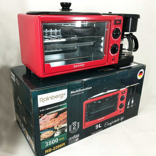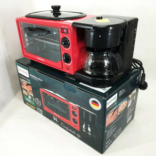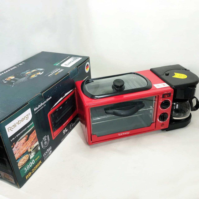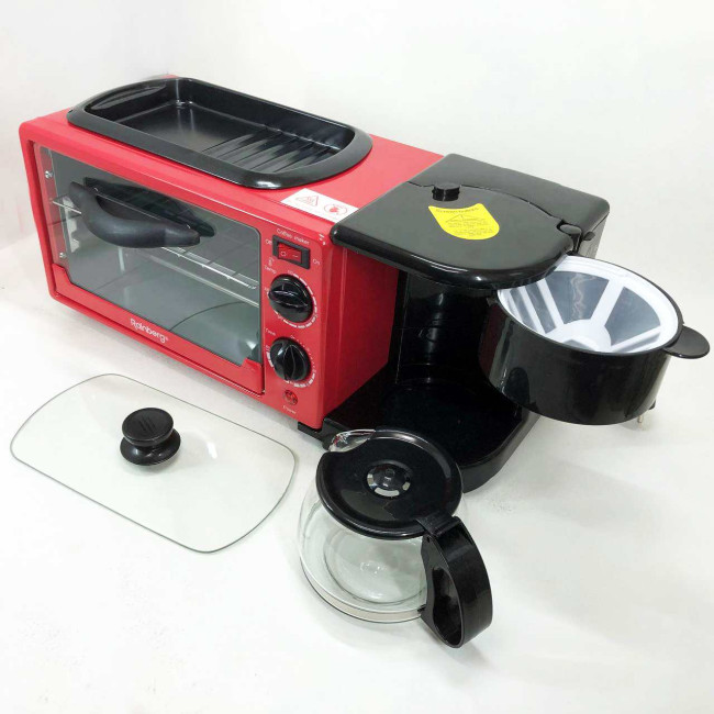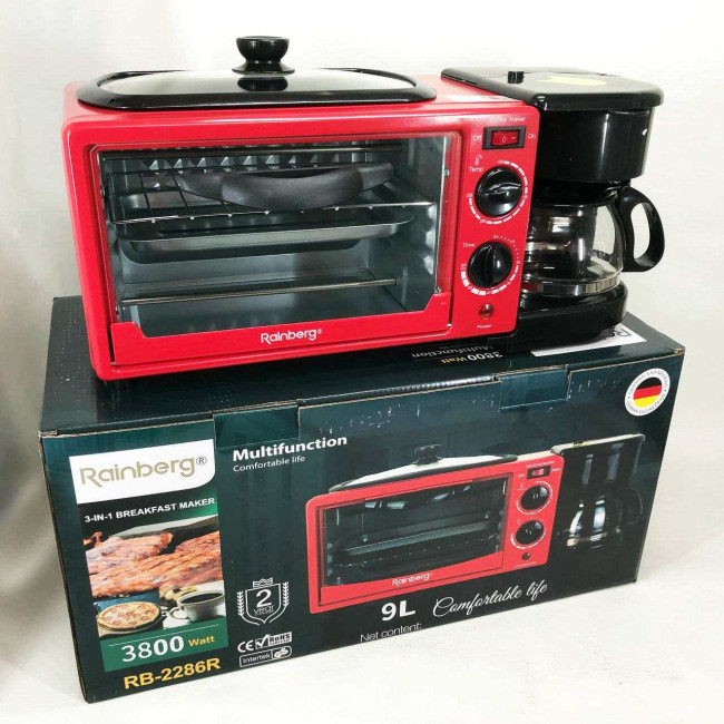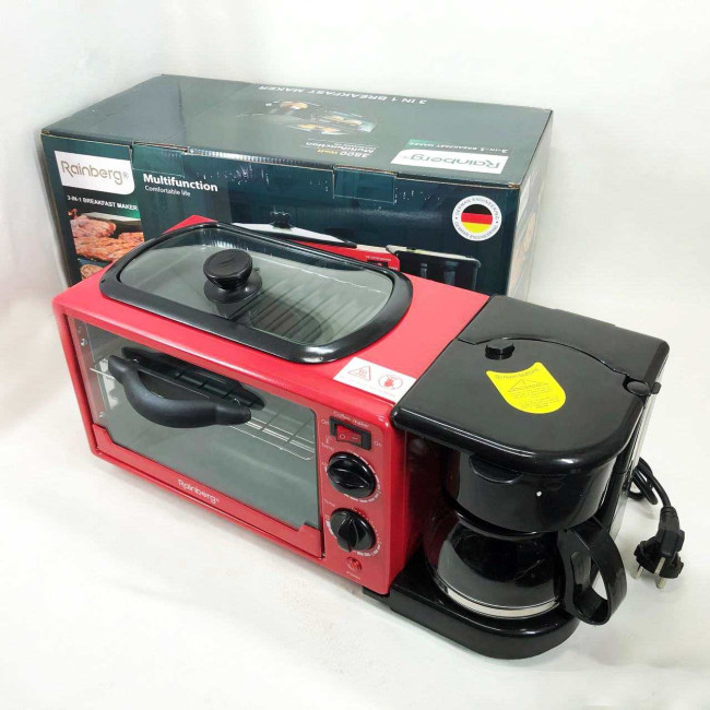 Електрична піч для сніданку 3в1 Rainberg RB-2286R 3800 Вт (піч, кавоварка, поверхня для смаження)