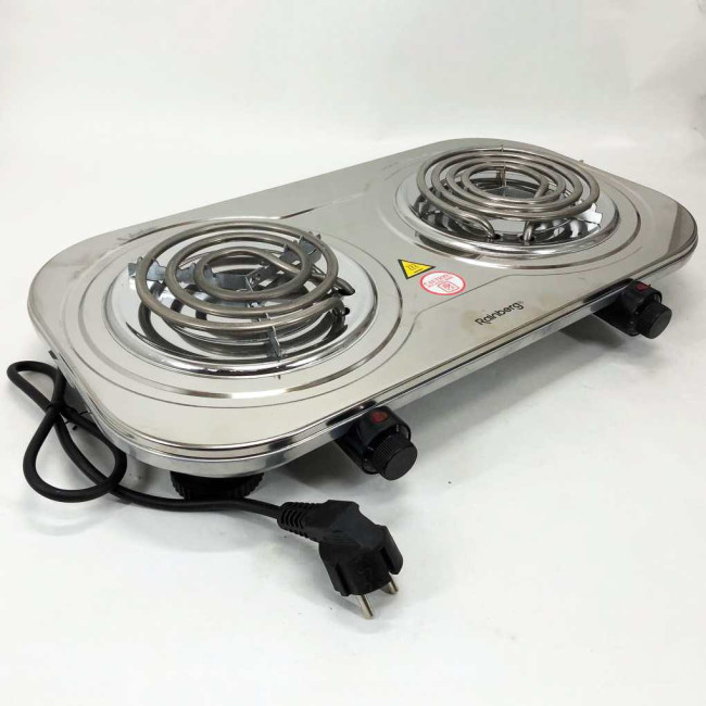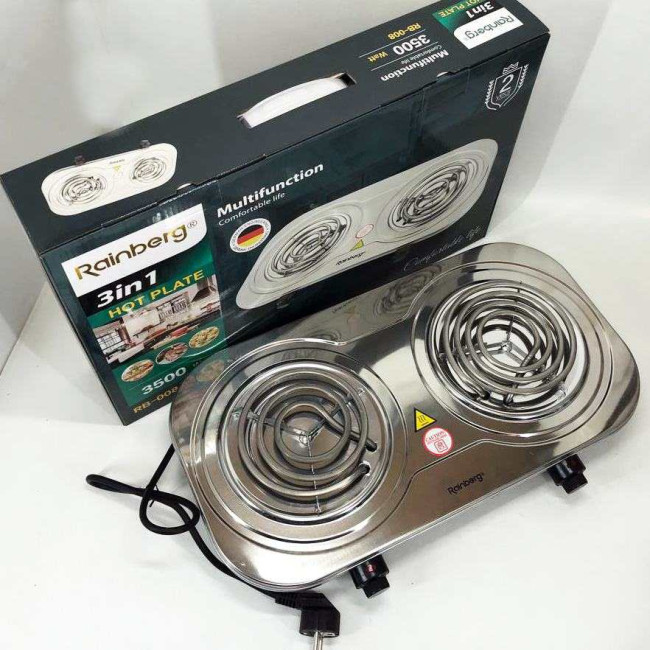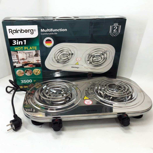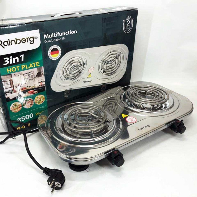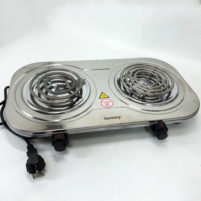 Електрична плита Rainberg RB-008 на 2 поверхні спіральна + 2 регулятори 3500 Вт