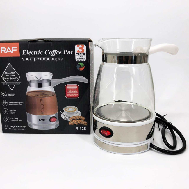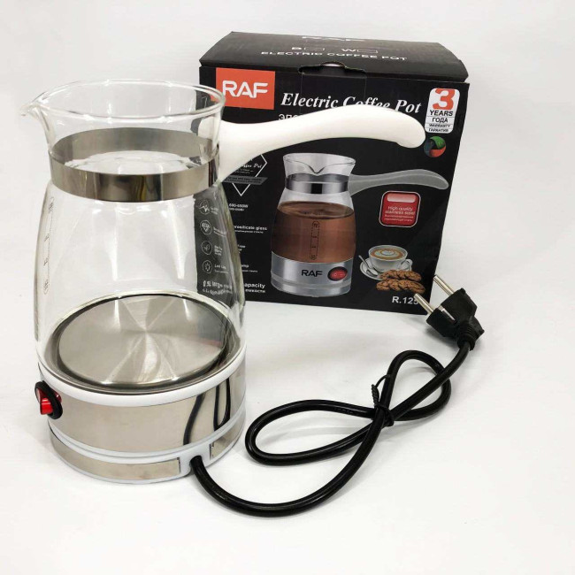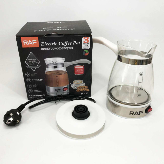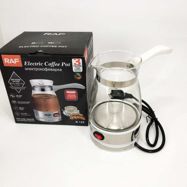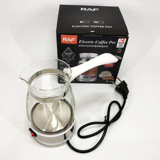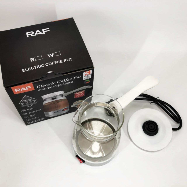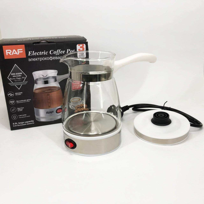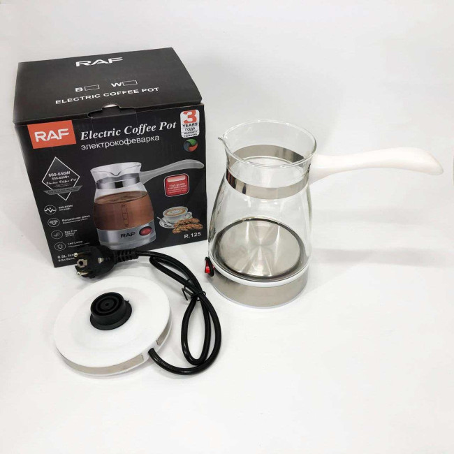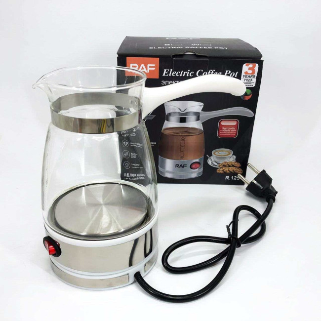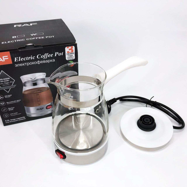 Електрична турка для кави RAF R.125 Кавоварка зі скляною чашею 500мл 600 Вт. Колір: білий