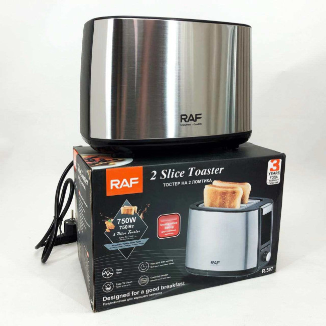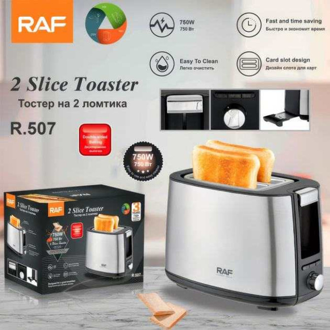 Електричний тостер RAF R.507 з 7 регульованими рівнями підсмажування та знімним піддоном для крихт 750 Вт