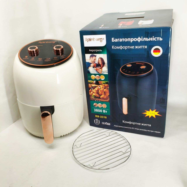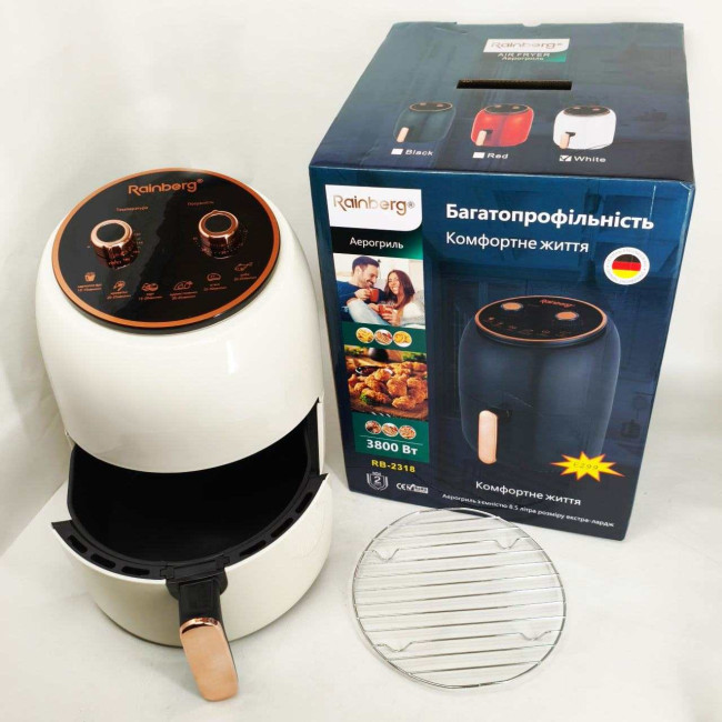 Електро Фритюрниця безмасляна Rainberg RB-2318 3800 Вт з знімним кошиком 8.5л до 30 хв White
