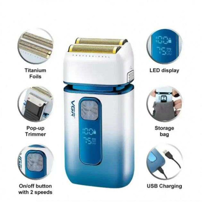 Електробритва-шейвер VGR V-362 чоловіча професійна для сухого гоління з тримером. Колір: білий