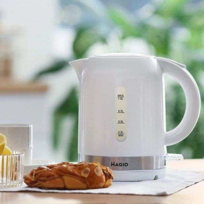 Електрочайник Magio оптимально підходить для домашнього та офісного використання, де необхідно швидко та зручно приготувати чай, каву або інші гарячі напої. Завдяки своєму компактному об’єму він ідеально впишеться в невеликі кухні, офісні перерви або навіть поїздки на дачу. Швидка швидкість нагріву робить його корисним також у тих місцях, де цінується кожна хвилина — наприклад, кімнати для співробітників, кафе і міні-кухні. Пристрій оптимальний для людей, які цінують комфорт і оперативність при приготуванні гарячих напоїв.