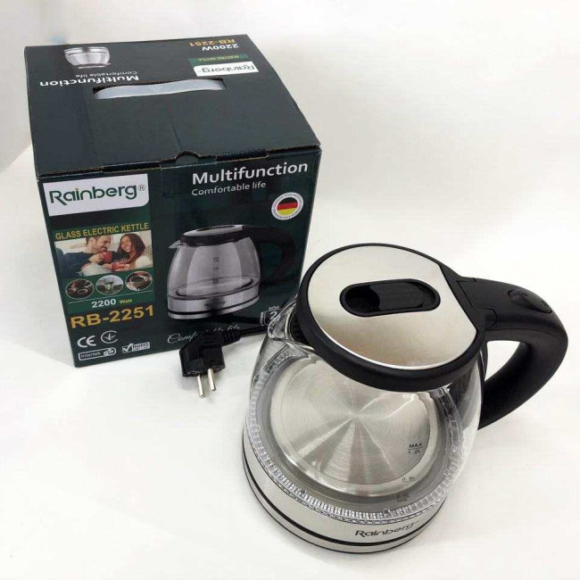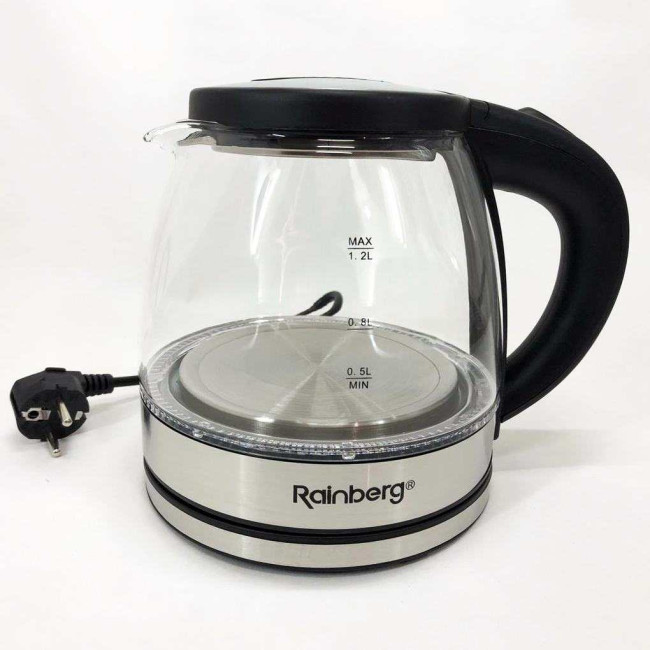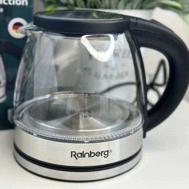 Електрочайник скляний Rainberg RB-2251 - 1л, стильний електричний чайник, безшумний чайник