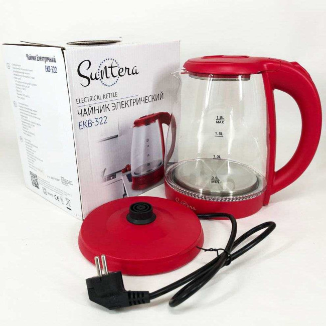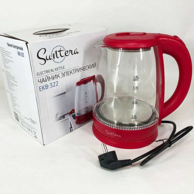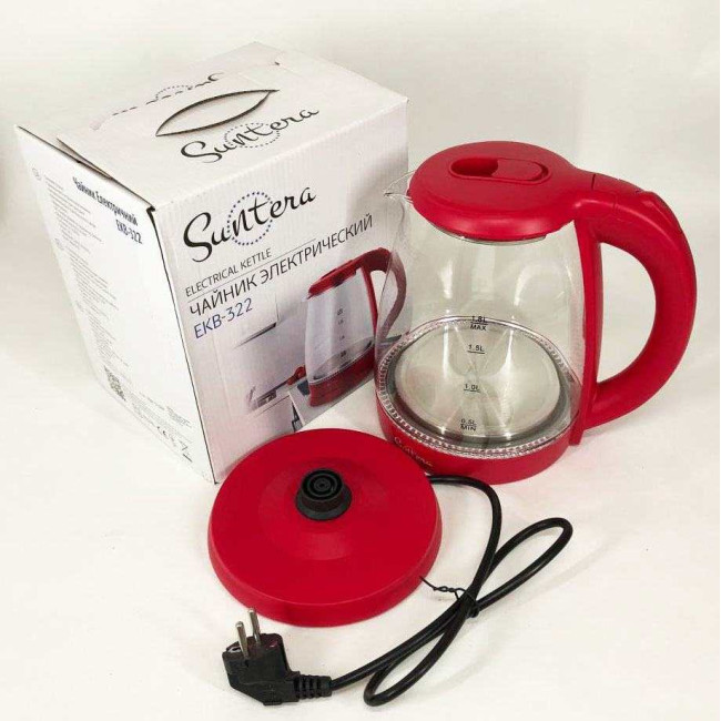 Електрочайник Suntera EKB-322R, чайники з підсвічуванням, електрочайники з підсвічуванням. Колір: червоний