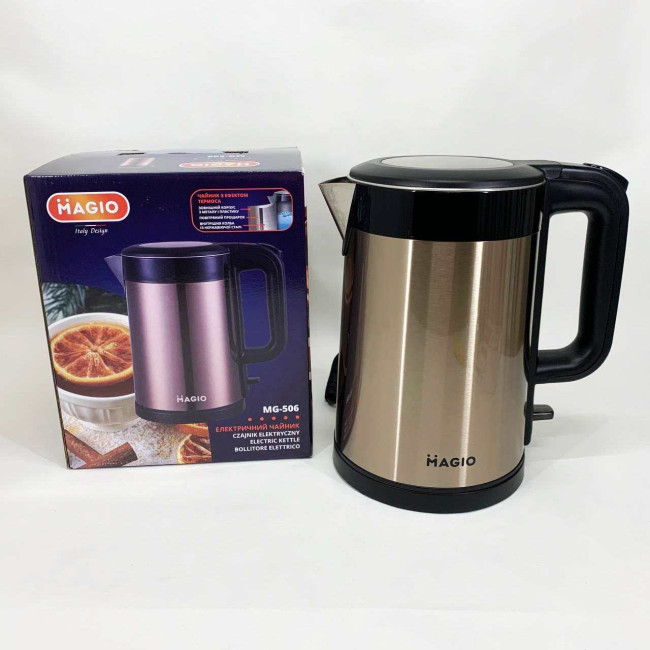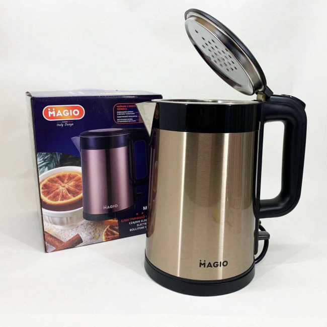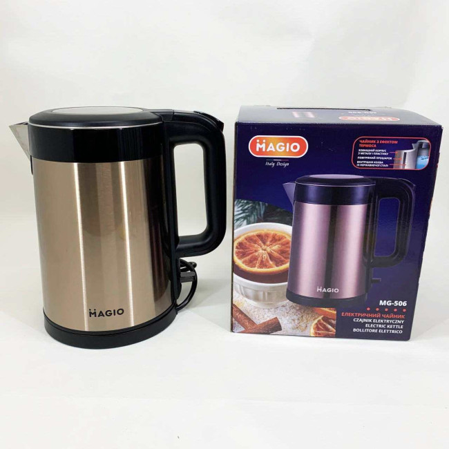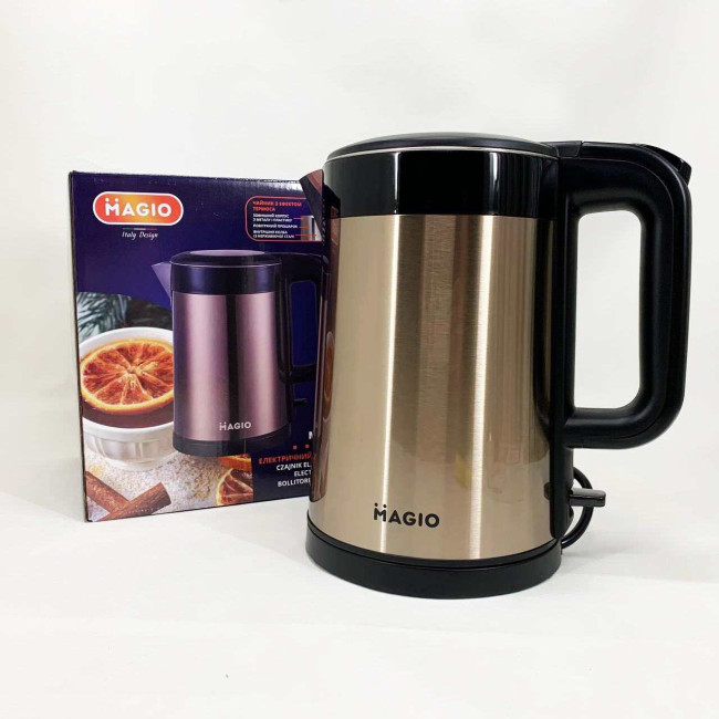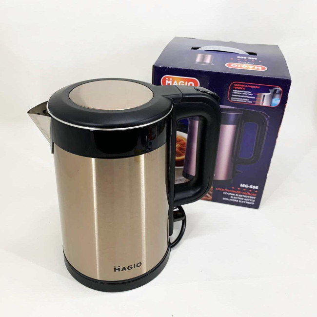 Електрочайник Magio МG-506 поєднує в собі функціональність та стильний дизайн. Об’єм 1,5 літра та потужність 1500 Вт забезпечують швидкий закип води, а двошаровий корпус із захистом від опіків підвищує безпеку використання.