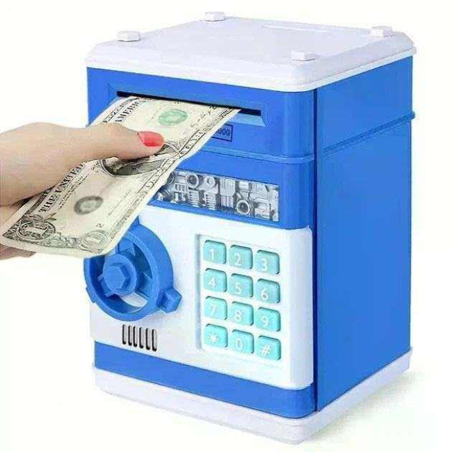Електронна скарбничка сейф банкомат для дітей з PIN-кодом, автоматичний прийом банкнот та монет Blue