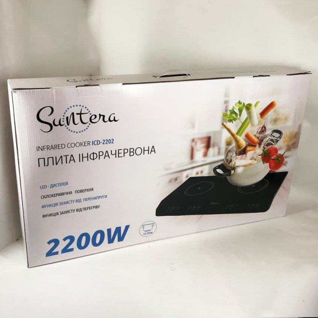 Електроплита велика індукційна на 2 конфорки Suntera ICD-2202 2200 Вт, Електроплита настільна від мережі