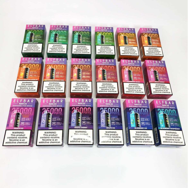 Elf Bar Raya D3 25000 створений, щоб задовольнити ваші бажання безліччю спокусливих смаків Elf Bar. Створений з точністю і пристрастю, Elf Bar Raya D3 25000 поєднує в собі передові технології з безліччю апетитних смаків, гарантуючи, що кожне використання стане подорожжю насолоди. З того моменту, як ви зробите свою першу спробу, ви перенесетесь в рай смаків, де кожен вдих — це симфонія смакових відчуттів.