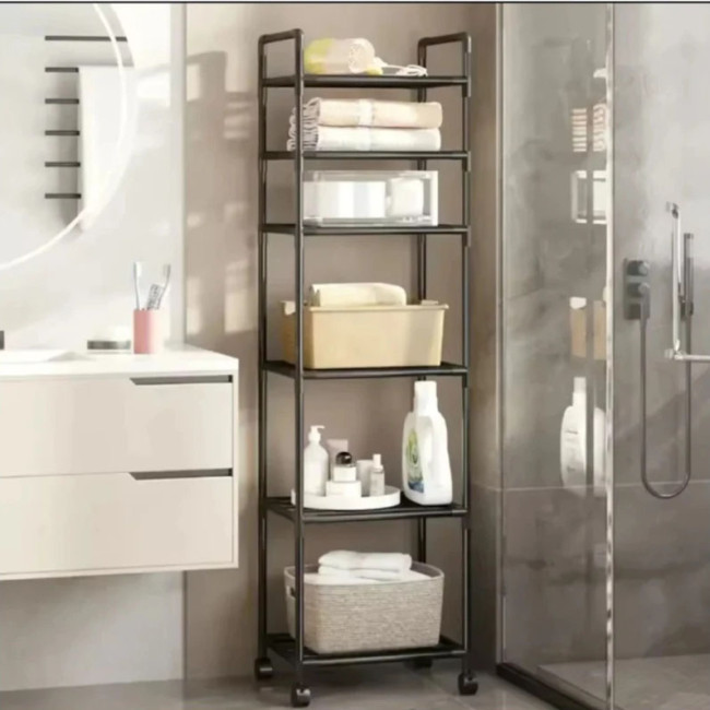Етажерка на колесах 6 ярусів підлогова чорна для зберігання