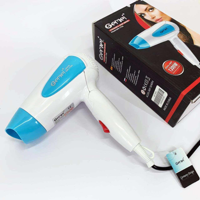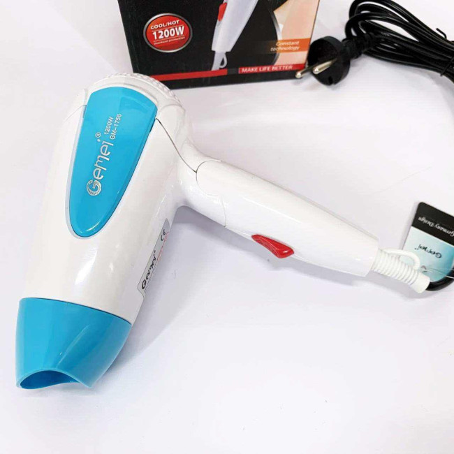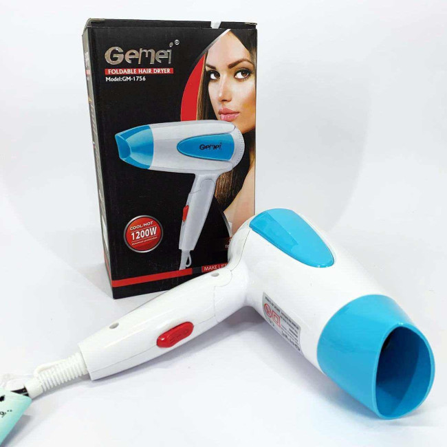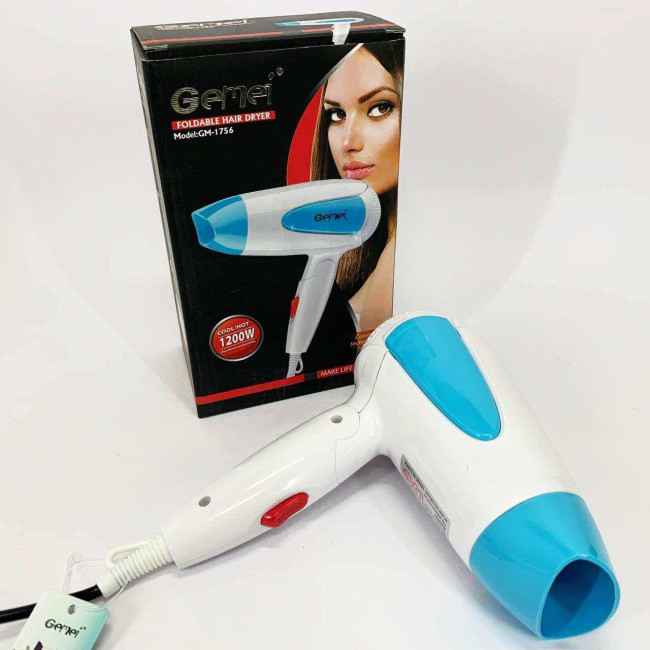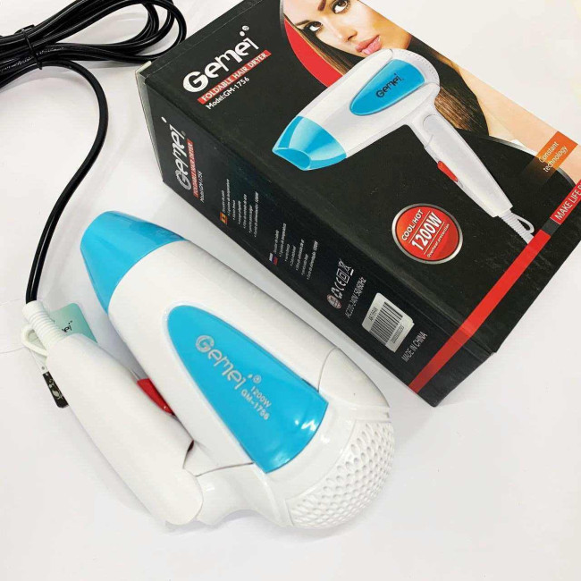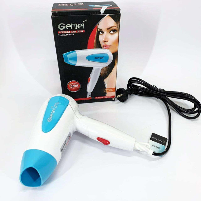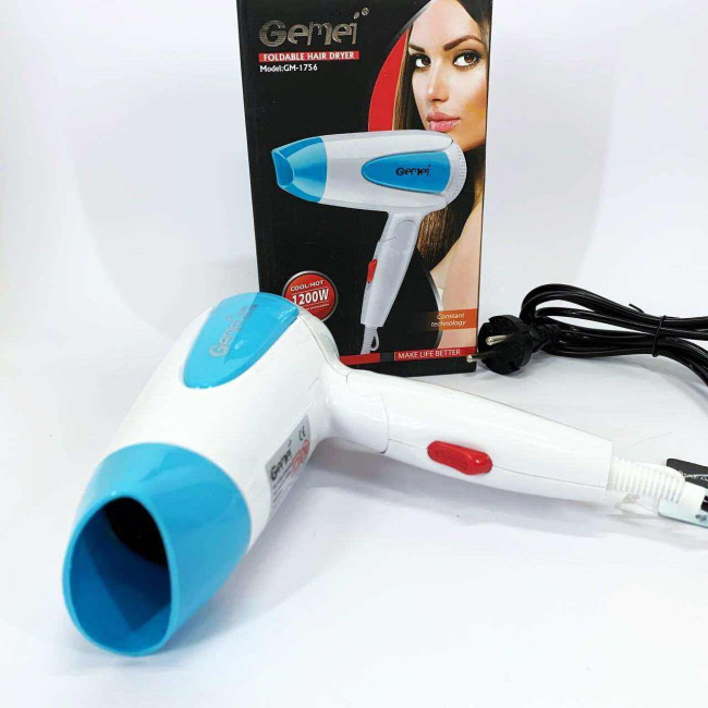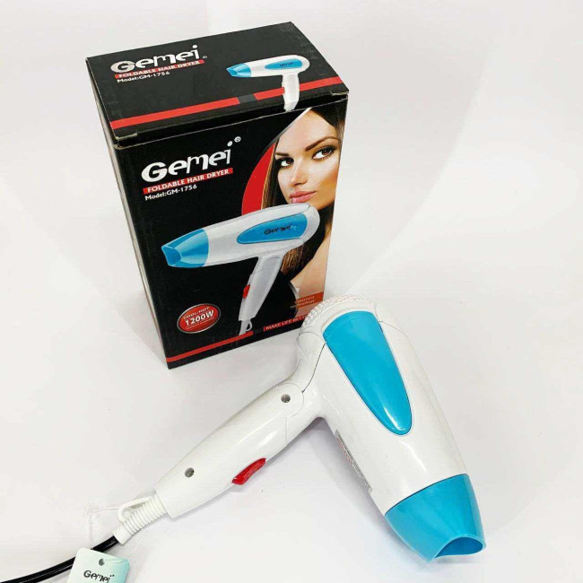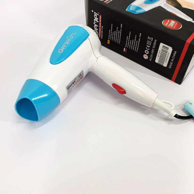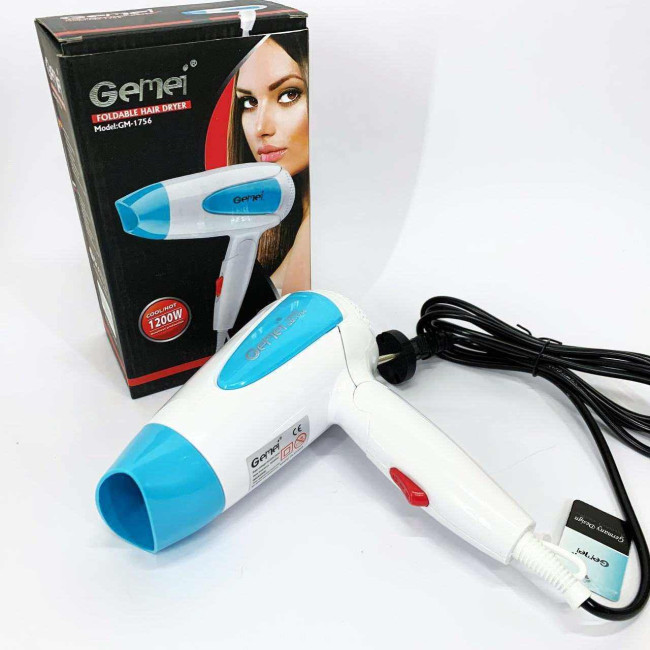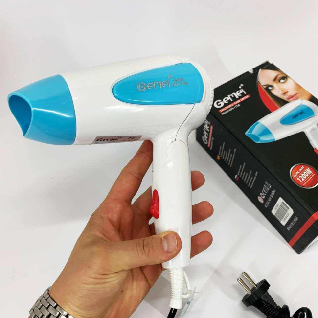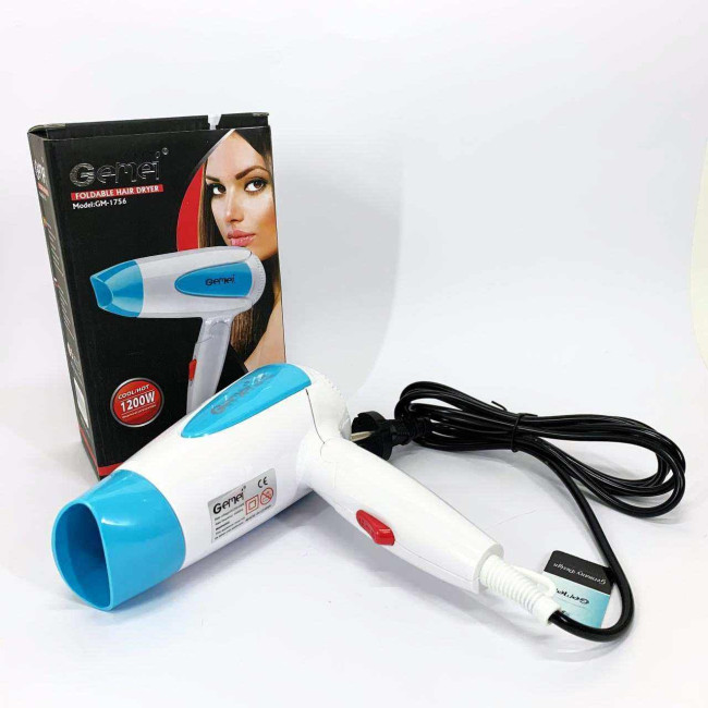 Фен для волосся складаний дорожній Gemei GM-1756 1200 Вт. Колір: блакитний