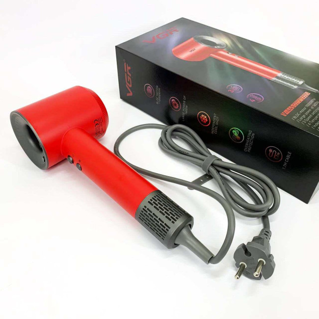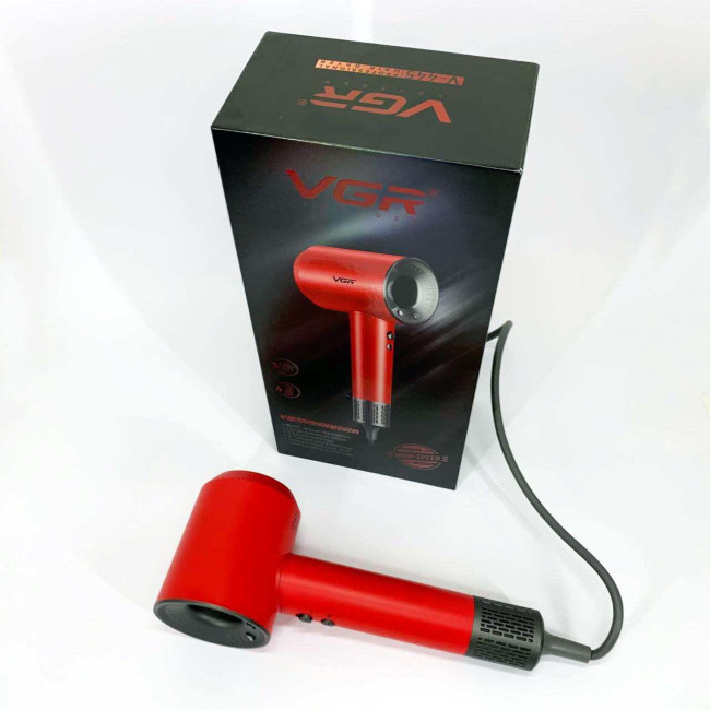 Фен професійний VGR V-445 RED, 3 рівні обдування, 4 рівні температури, 1600Вт